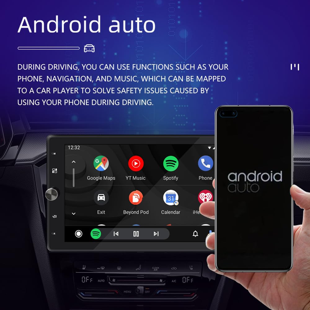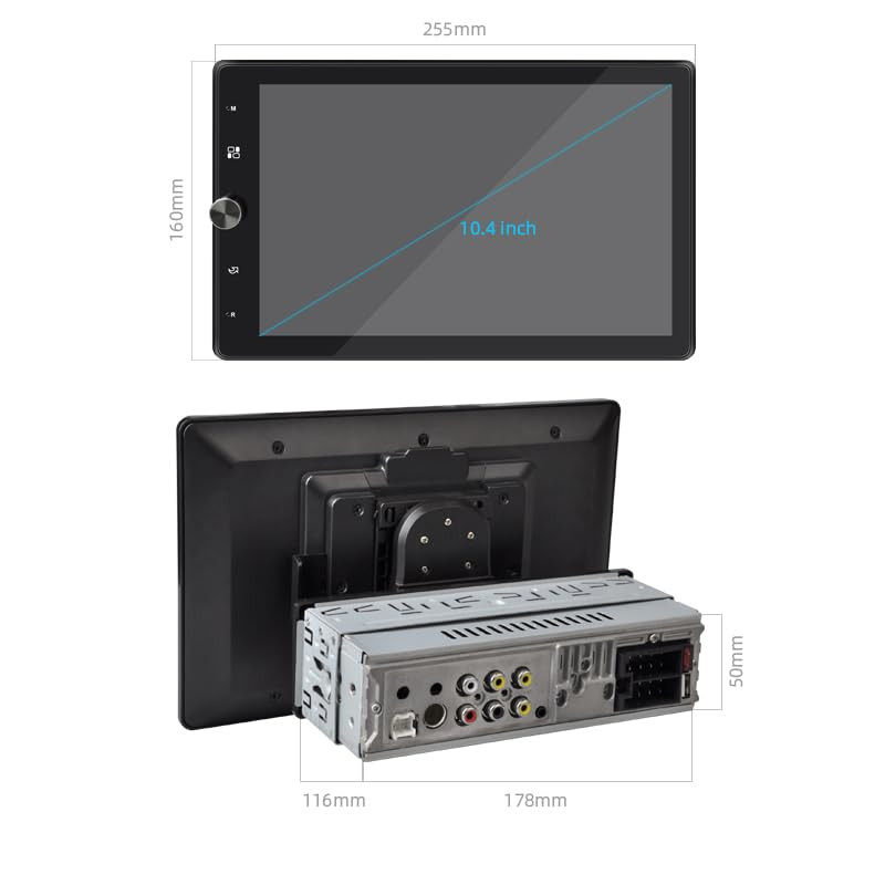 【Voltage Compatibility】 When using electrical appliances, please note that they are designed for Japanese voltage specifications (90-110V), so if you use them with a different voltage, it may cause a malfunction. 【Plug Type】 Our products use Japanese plug types (A or B type). Please use a conversion adapter if necessary. 【Important Note on Transformers and Adapters】 A transformer adjusts voltage to match your device’s requirements. A conversion adapter only changes the plug shape and does not adjust voltage. Using only a conversion adapter without a transformer may result in damage to the product. 【Liability】 We are not responsible for malfunctions or damages caused by improper use, such as operating the product without a transformer. ---------------------------------------------------------------------- Carplay&Android Auto: The car stereo supports IOS Carplay and Android Auto. Just connect it to your smartphone with a USB cable and you'll have access to map navigation, phone contacts, music, and more while staying focused on the road. You can listen to music while using GPS navigation instead of always using your hands like before. Mirror link function: Mirror link through the phone's original USB line can be synced to the onboard screen. Through Mirror Link, the car stereo synchronously displays the content of your phone's screen. Turning on the navigation app on your phone allows you to use in-car navigation features while driving. Smart voice control: Use your smartphone's AI assistant to make calls and play your favorite music without taking your eyes off the road. You can also connect Siri or G-oogle Assistant on your device to control your Carplay receiver with just your voice. Manually adjust the rotated screen. The screen can be manually adjusted up and down, left and right, and front and back. Adjust as needed to reduce the effect of light on the screen. Bluetooth and FM: Car audio built-in Bluetooth supports Bluetooth hands-free calling, Bluetooth music playback, and automatic phonebook loading. FM Radio has 18 preset stations, and you can save your favorite stations to listen to news, music, and programs anytime. Steering wheel controls: Open the steering wheel panel, select the purpose of the buttons, and press the buttons on the steering wheel to operate the functions. Once verified, you can control the machine using the steering wheel. Car 1Din Carplay Player Automatically converts in-dash 1 to 10.4 inch full touch capacitive screen 10.4 inch high resolution TFT screen Automatically converts colorful lights 24 hour digital clock, date. Support power output allows you to charge your mobile phone or other USB devices Support FM function. (Frequency: 87.5 to 108MHz). Support lR wireless remote control Support storage device: USB disk/TFcard/other USB storage device Support video format: RMVB/RM/FLV/3GP/DIVX/XVID/DAT/VOB/AVI/MP4. Support audio format: MP3/WMA/OGGIAPE/AAC/FLAC/WAV. Support image format: JPG/PNG/BMP Interface: USB/TF/AUX. Support maximum external storage: 64GB Support Carplay system. Support Mirror Link: IOS/Android. Supports back view. Supports USB DVR. original car Supports steering remote control. Supports Bluetooth. Output power: 7388 high power Input voltage: DC12V.