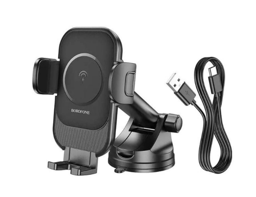 Installation location: car panel / windshieldThe black car holder BOROFONE BH203 is a universal device that allows not only to comfortably secure your mobile phone in the car, but also to power it wirelessly. The BH203 model has a charging capacity of up to 15 W and is suitable for use on the car dashboard.