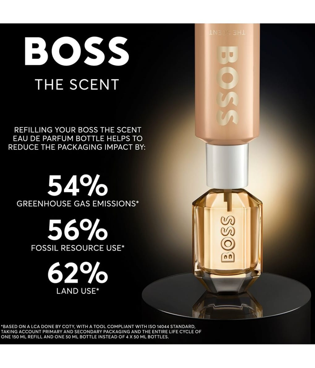 Unleash the power of attraction with BOSS The Scent for Her, an iconic, refillable Eau de Parfum that captures the intense chemistry between a power couple. Inspired by this dynamic connection, the amber-floral-fruity fragrance combines irresistible contrasts to create a captivating scent.