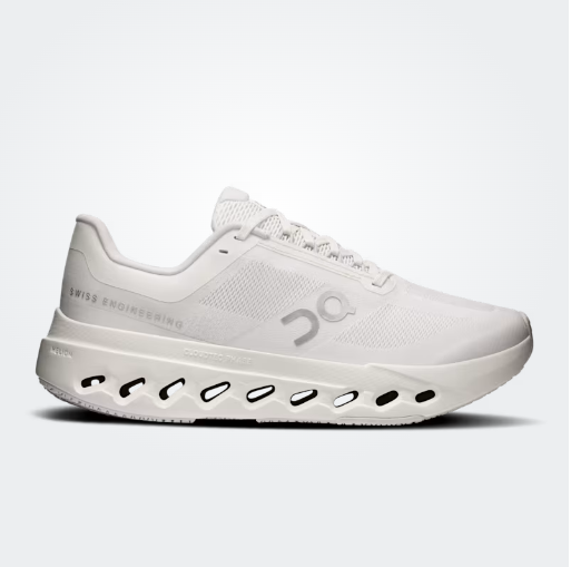 The Women’s Cloudsurfer Next Wide delivers a comfortable, wider fit and a dynamic running feel. Responsive midsole cushioning combines Helion™ superfoam with CloudTec Phase™ technology for smooth transitions. The lightweight woven upper fits wider foot shapes comfortably and allows easy on/off. A forefoot rocker design boosts propulsion, while the rubber outsole ensures durable grip. Weight is approximately 230 g, with a 6 mm drop. Materials: upper — 39% TPE, 39% polyester, 22% polyamide; quarter — 47% thermoplastic polyurethane, 36% recycled TPU, 17% polyurethane; tongue, vamp lining, collar lining — 100% recycled polyester. Care: wipe with a damp cloth, air dry, do not machine wash.