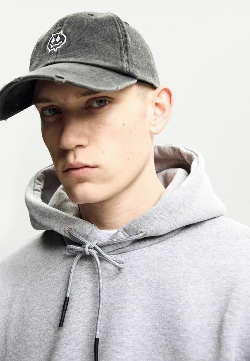 This Bershka cap features a stylish ripped look combined with subtle embroidery accents. Crafted entirely from cotton denim, it offers both breathability and comfort. The hook-and-loop fastening ensures a snug, adjustable fit. A great accessory for casual and streetwear-inspired outfits.