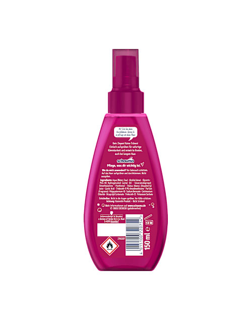 Schauma Kids Combing Spray with Raspberry is specially designed for children's hair. Simply spray the detangling spray onto the hair, comb through thoroughly, and do not rinse. The raspberry-infused nourishing formula ensures easy detangling and smooth combing, even for long hair – all without tugging or tears. Your child can also enjoy the pleasant raspberry scent.