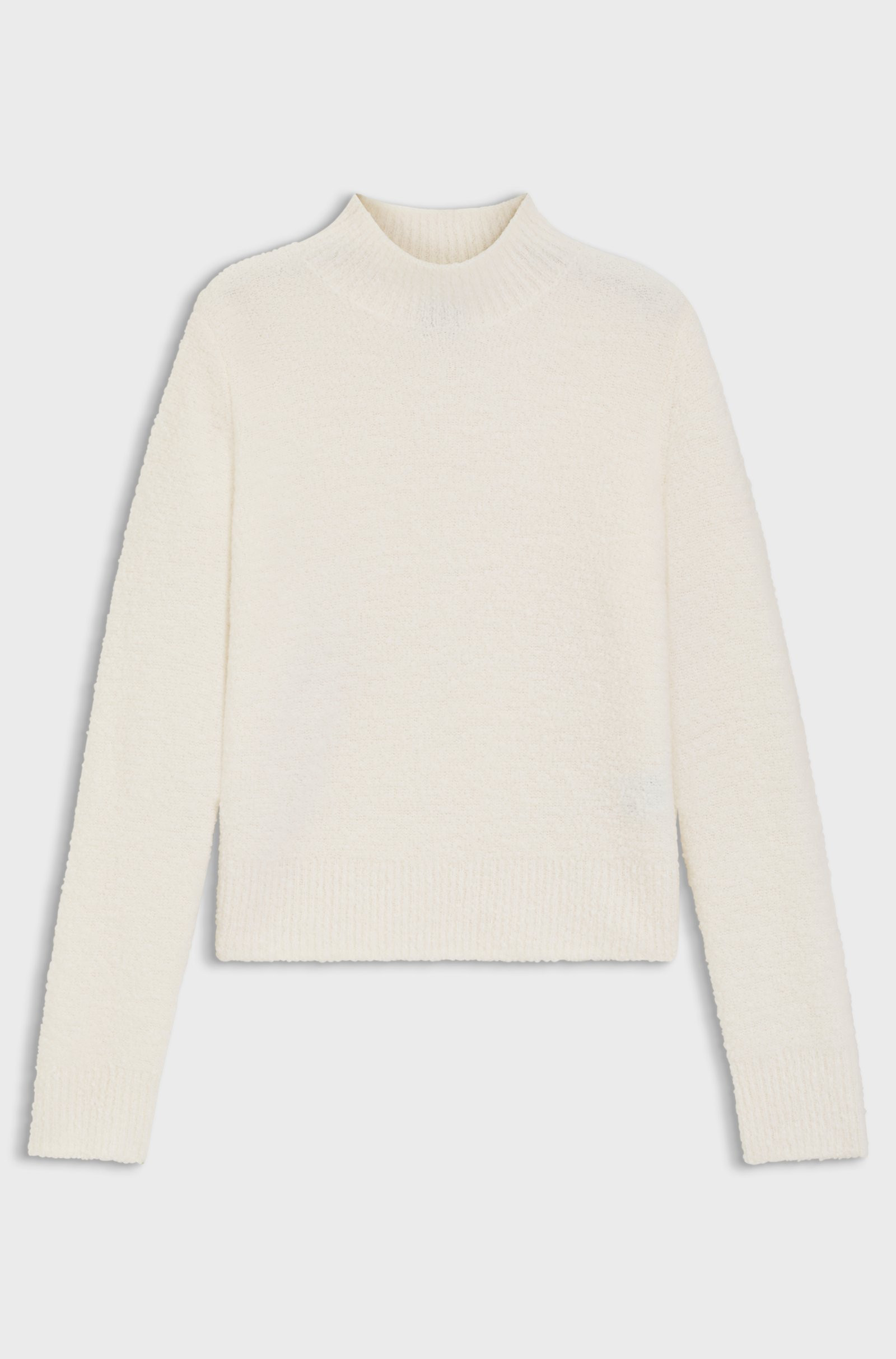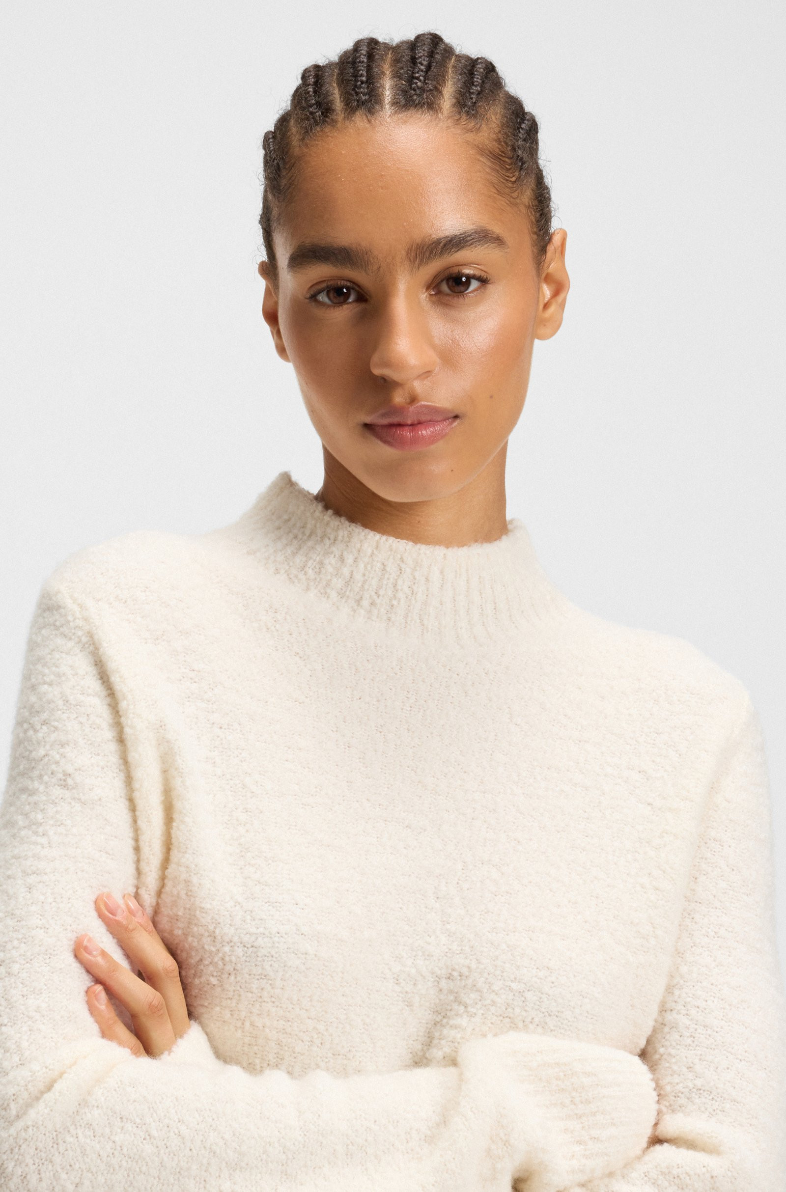 Layer up in luxury with the extra-soft yet durable bouclé knit of this BOSS Womenswear sweater. With wool and cashmere. Mock-neck profile. This product contains at least 60% better raw materials. This product is made with responsibly sourced wool. For us, responsibly sourced means mulesing free, and meeting the standards of the Five Freedoms of animal welfare.