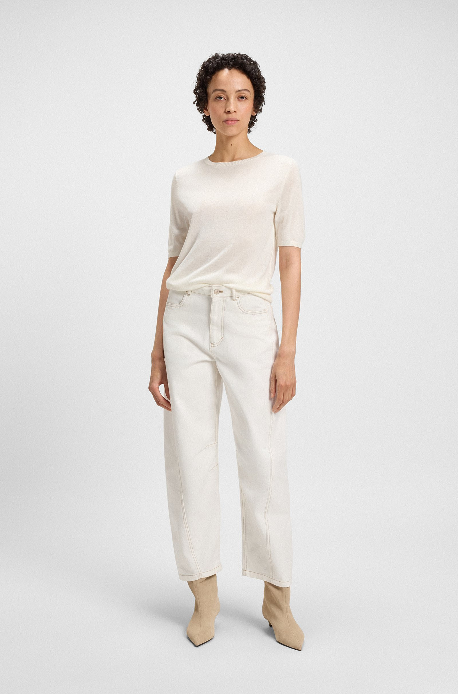 BOSS Short-sleeved knit sweater with openwork stitching
