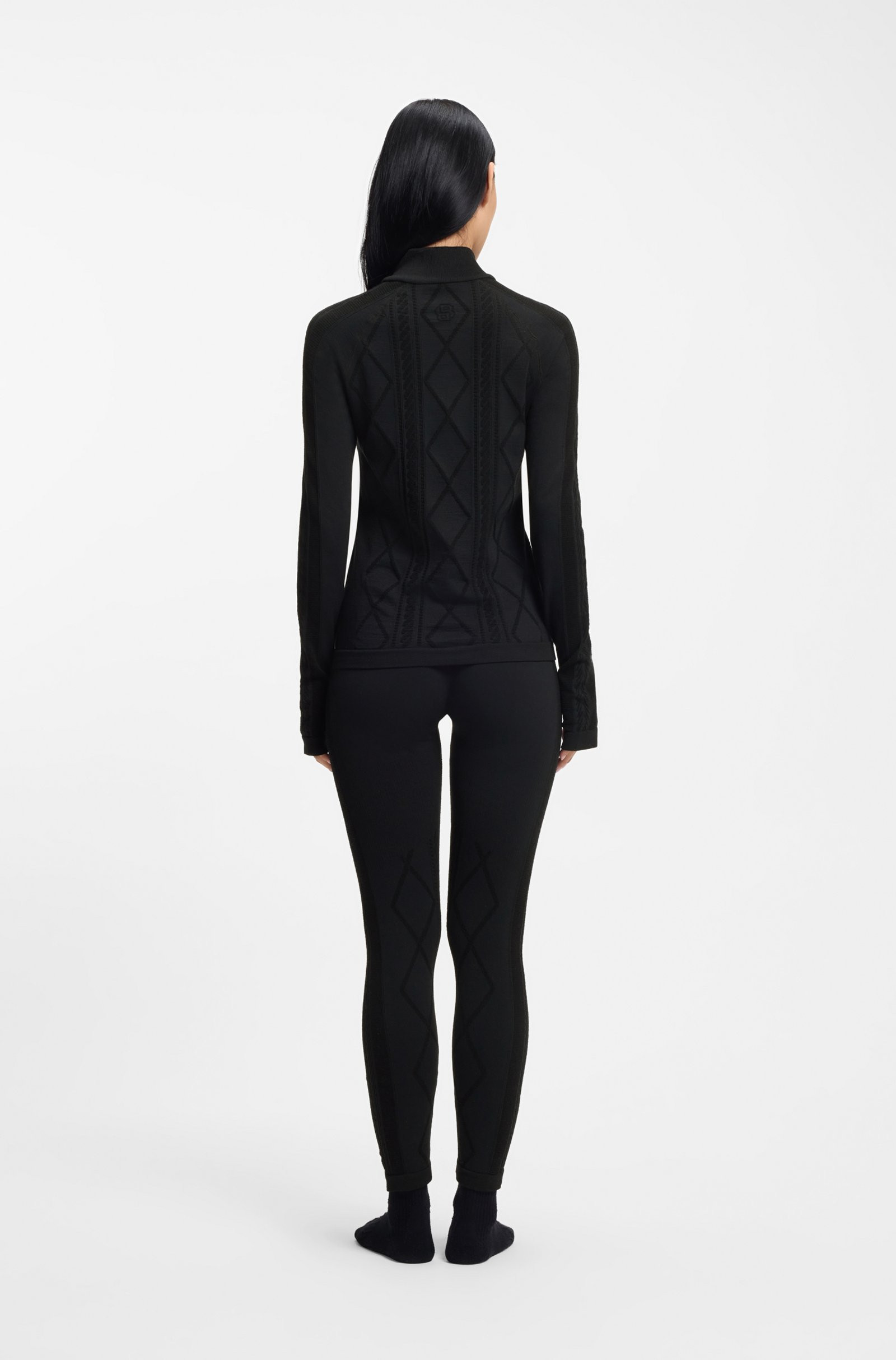 The model wears a size S and is 177 cm tall with a, 80 cm chest, 60 cm waist and 89 cm hips.