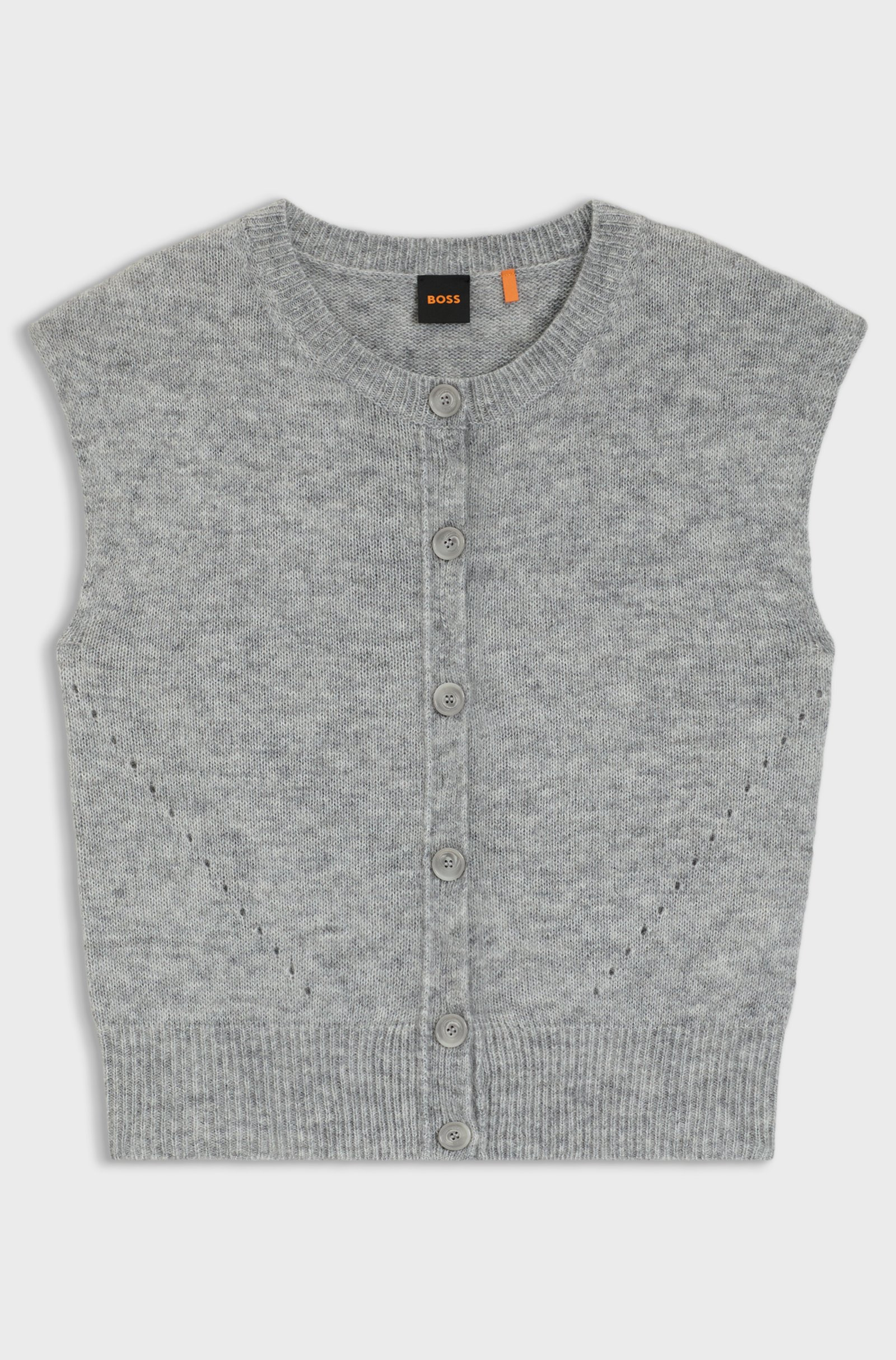 With sleeveless styling, this regular-fit BOSS Womenswear cardigan is blended with wool and alpaca for everyday comfort. Special knitted structure at the front.