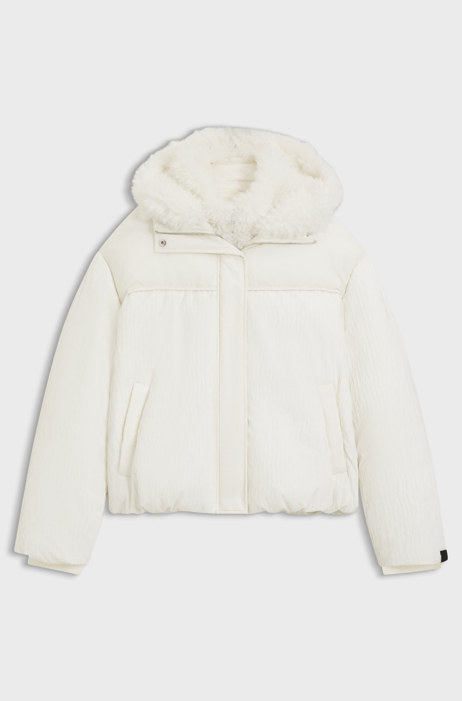 Material: 100% Polyester, Lining: 100% Polyamid, Filling: 100% Polyester, Cuff: 46% Polyacrylic, 28% Polyester, 26% Polyamid, Hood: 100% Polyester, yoke: 100% Polyamide (recycled)