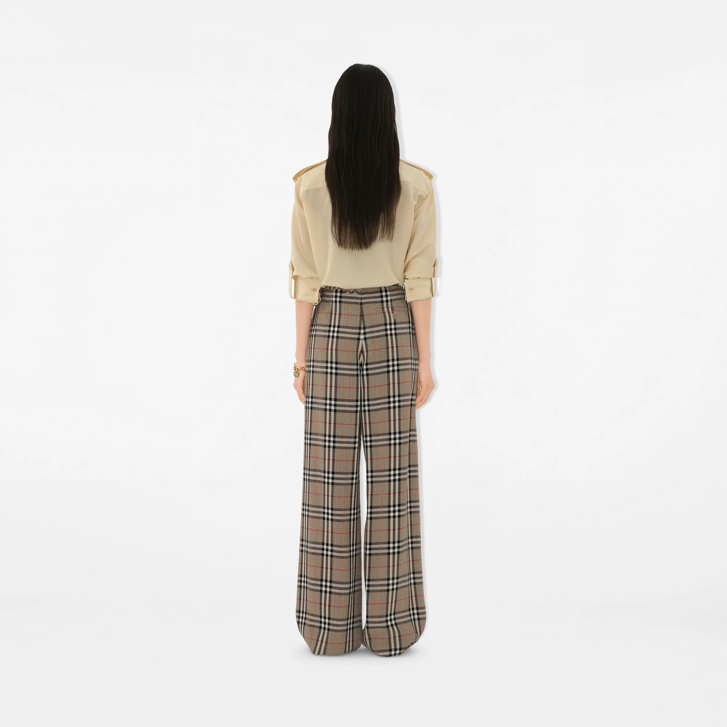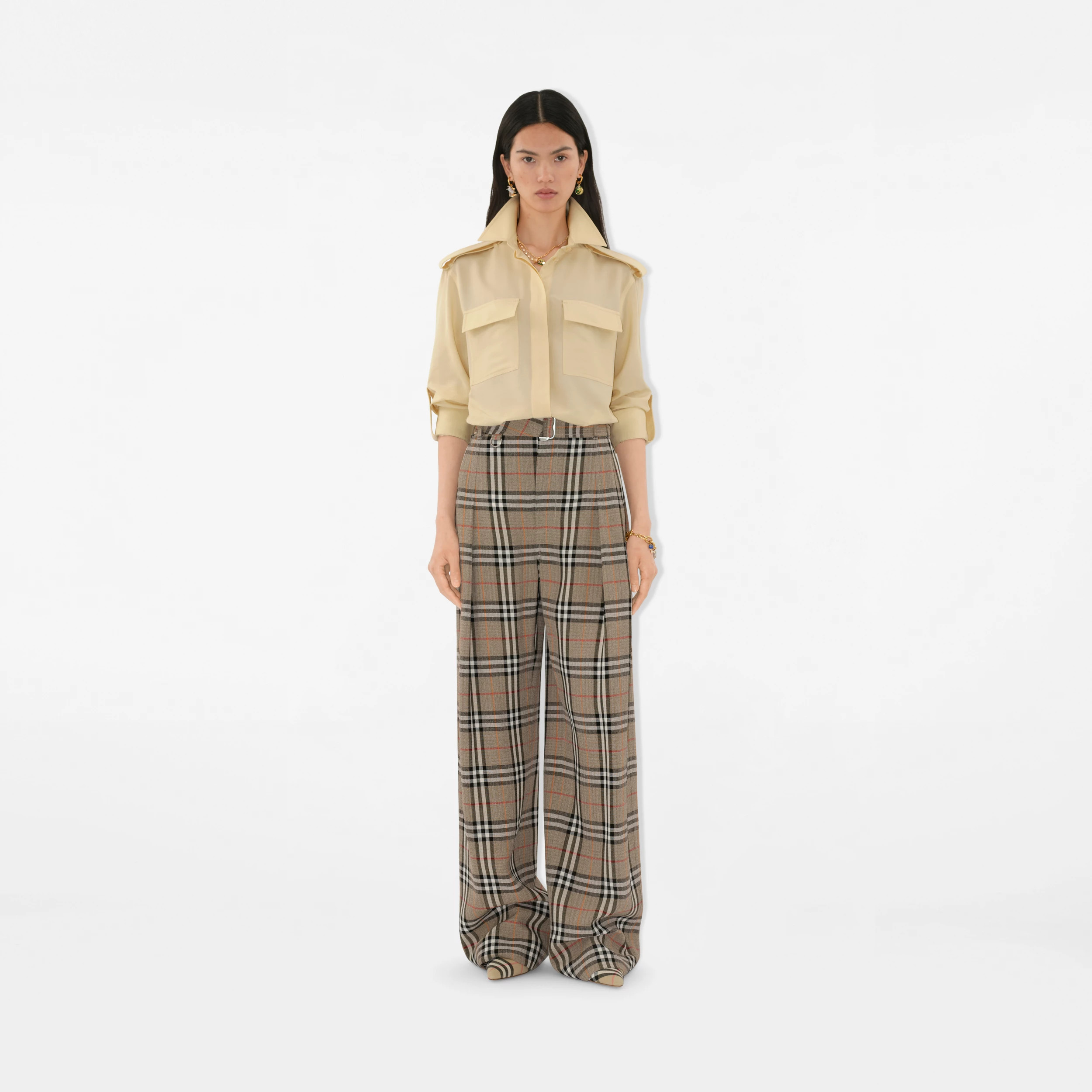 • Trousers made from a silk blend woven in Italy with the Burberry Check, tailored to a relaxed fit with double pleats. The design features a matching fabric belt detailed with our signature B buckle and D-ring hardware.