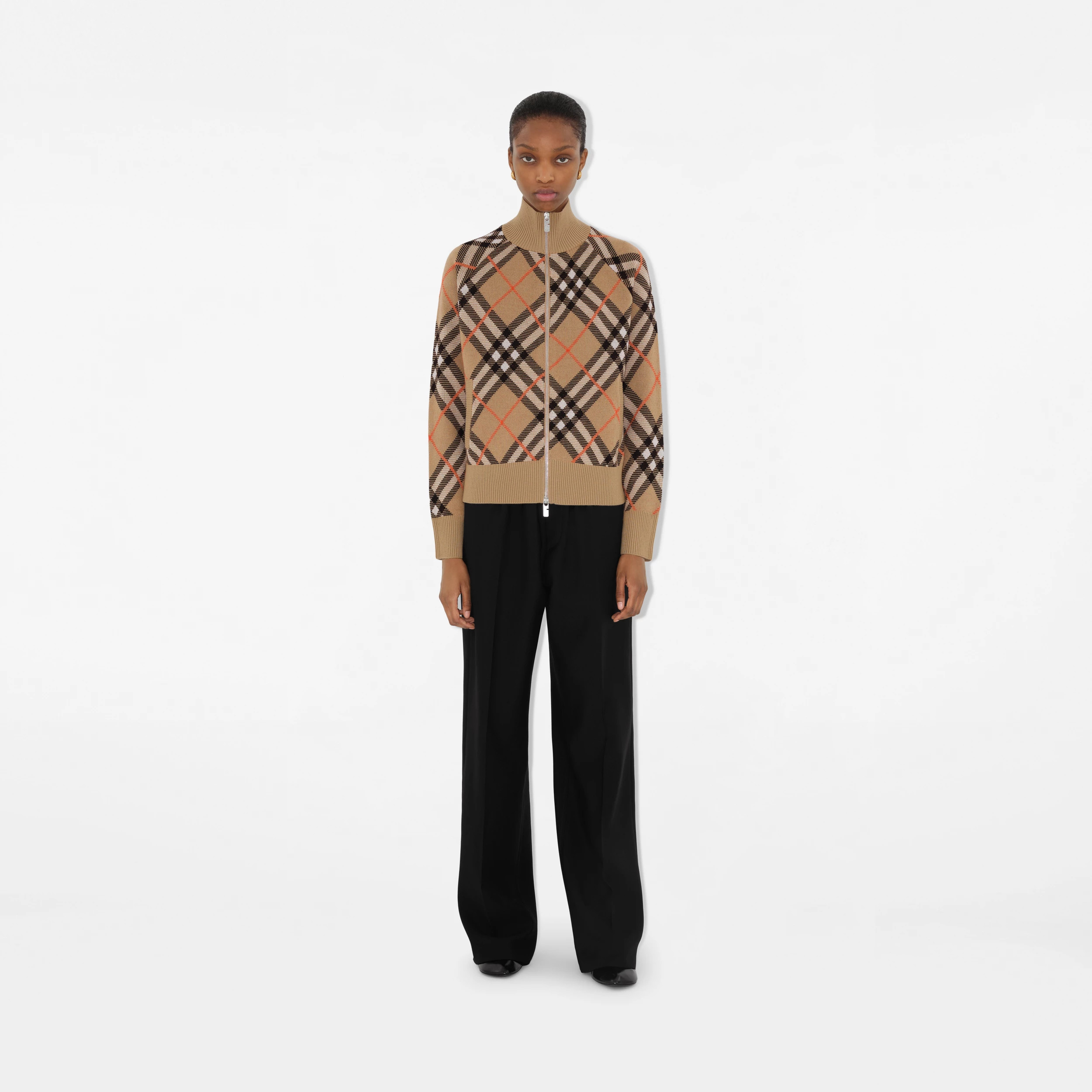 • A track jacket in a wool mohair blend knitted with the Burberry Check. The funnel-neck style is cut to a relaxed fit. Part of Burberry Classics, wardrobe foundations with a unique Burberry slant.