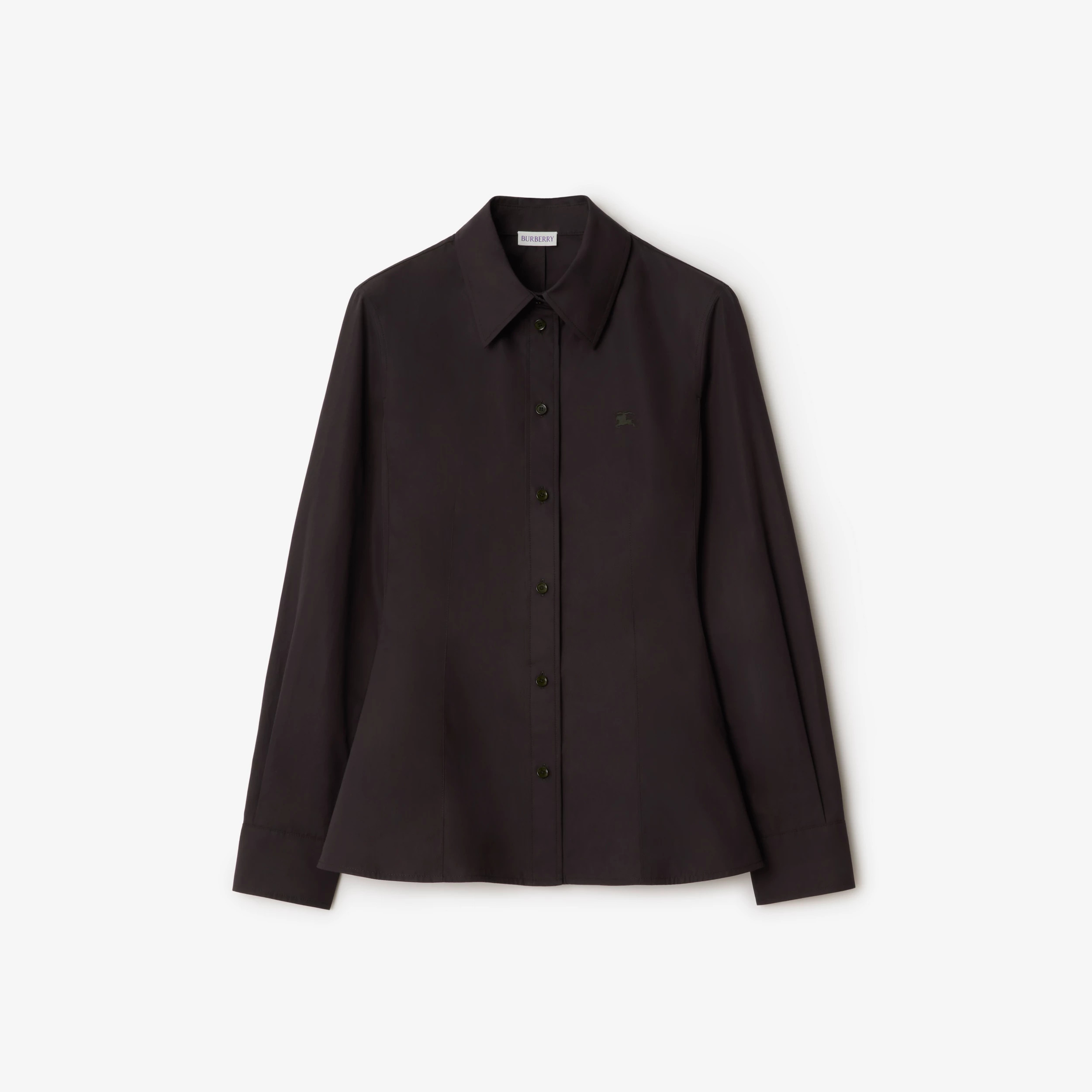 • A shirt in cotton poplin, embroidered with a tonal Equestrian Knight Design. The style is tailored to a slim fit on the waist with a flared hem. Burberry Check lines the placket and cuffs in our signature sand beige colourway.
