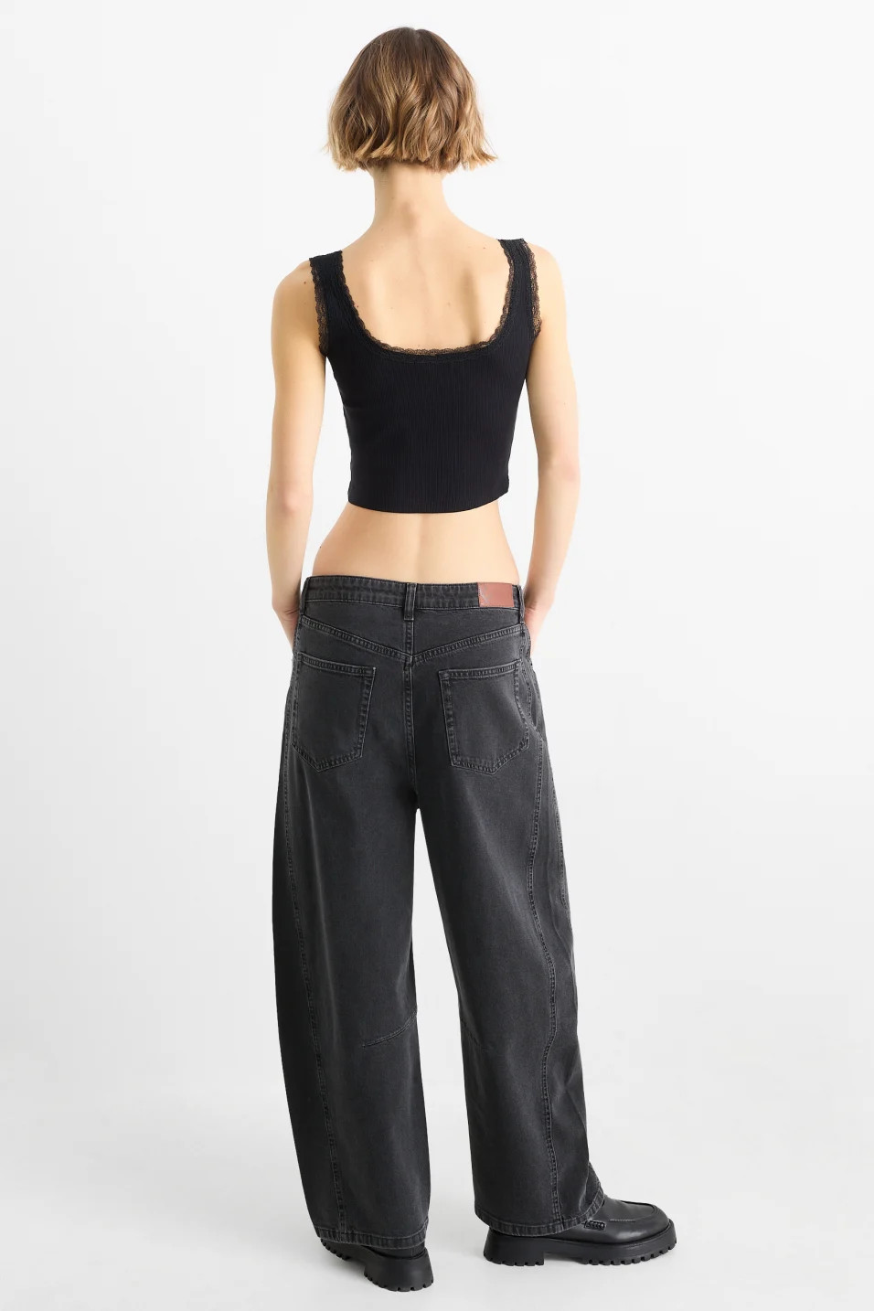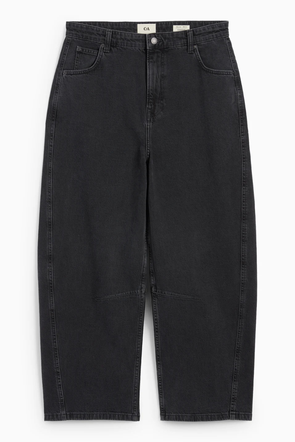 Balloon jeans made of slightly stretchy denim with washed effects.