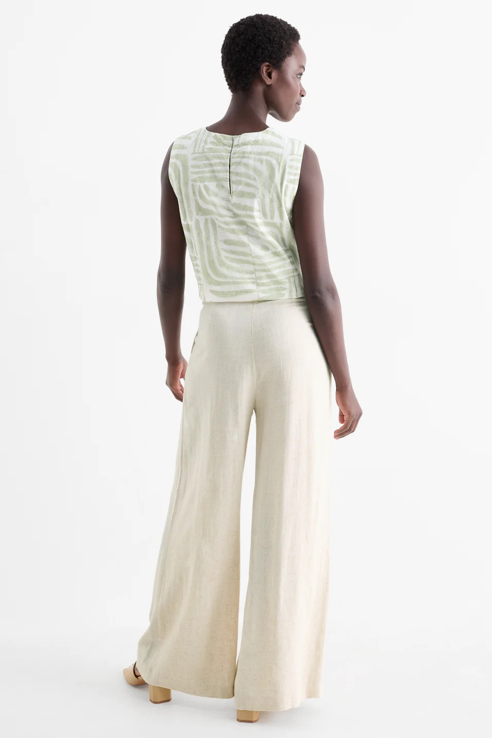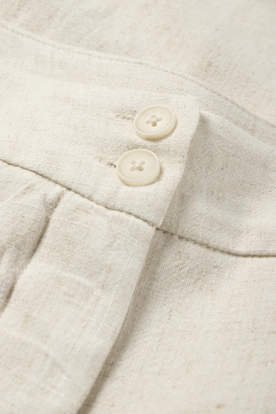 Business trousers made of lightweight woven fabric with a linen blend. Pleats and two side pockets.