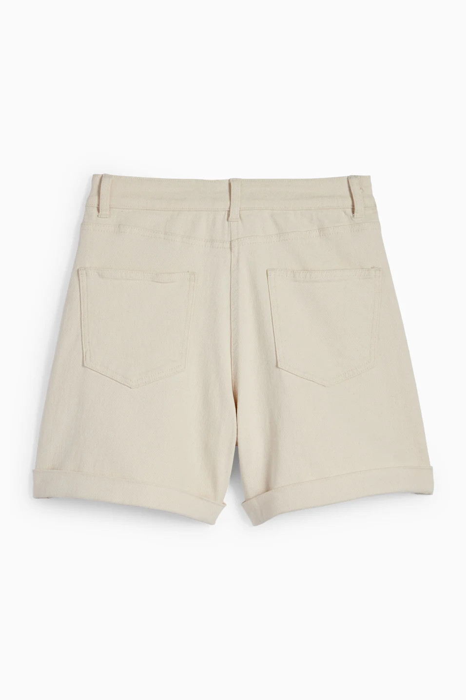 Denim shorts made of slightly stretchy denim with an even wash and fixed hem turn-ups.