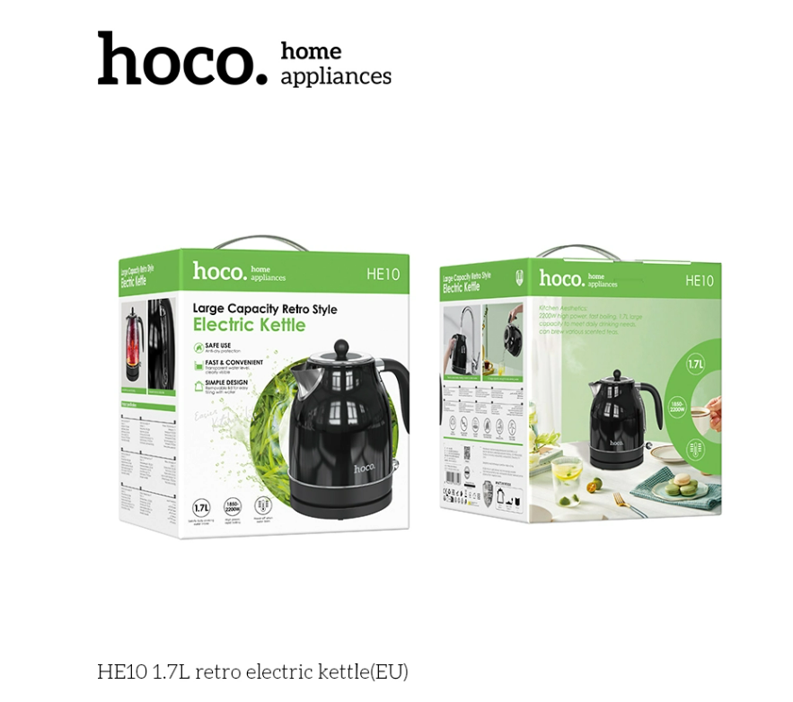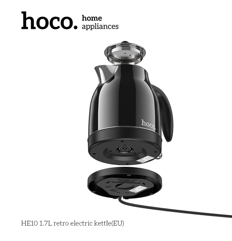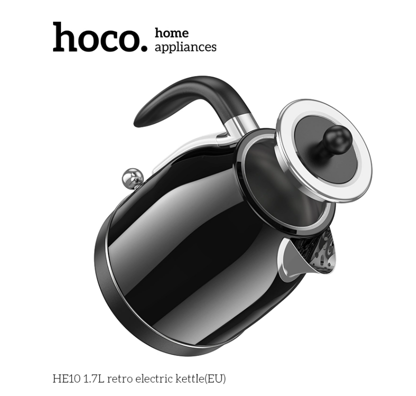 By choosing a HOCO He10 Retro Style electric kettle, you will have a stylish, functional and reliable device that will become an indispensable assistant in your kitchen.e HOCO He10 Retro Style electric kettle is equipped with an automatic shutdown and water-free operation protection system when the water boils, ensuring safety of Use and extending the service life of the device. A comfortable handle and a wide neck make the teapot easier to fill and clean.