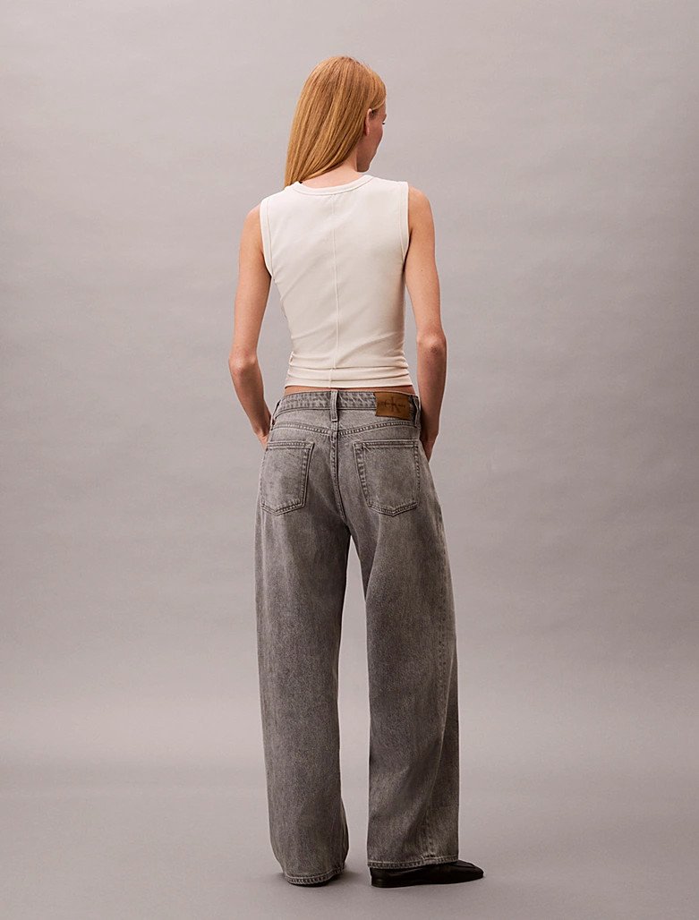 • Low-rise, baggy fit