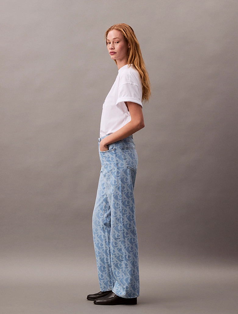 Our iconic '90s-inspired straight-leg jeans featuring the Calvin Klein monogram in a tonal all-over print.