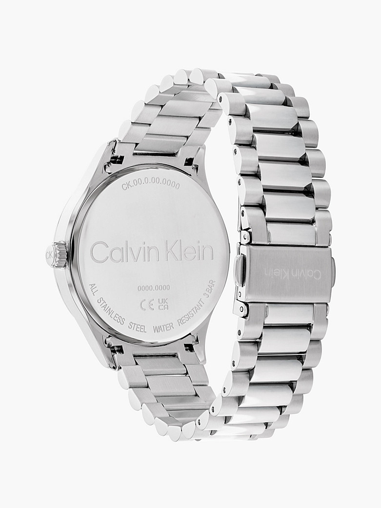 This polished stainless steel watch features a dial with an embossed monogram logo. The minimalist dial is paired with a sturdy link bracelet for a classic look.