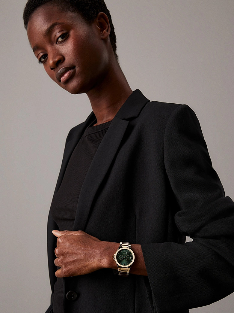 An energetic look for day and night. The combination of sport-inspired design elements and luxurious details makes this watch a true highlight.