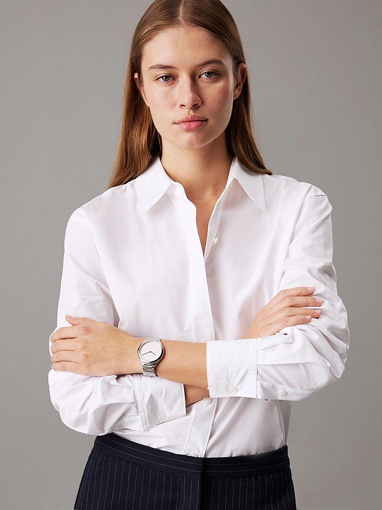 This minimalist watch is a sophisticated everyday timepiece. Featuring a wavy, textured dial and a rounded bezel. A link bracelet with soft, rounded edges.