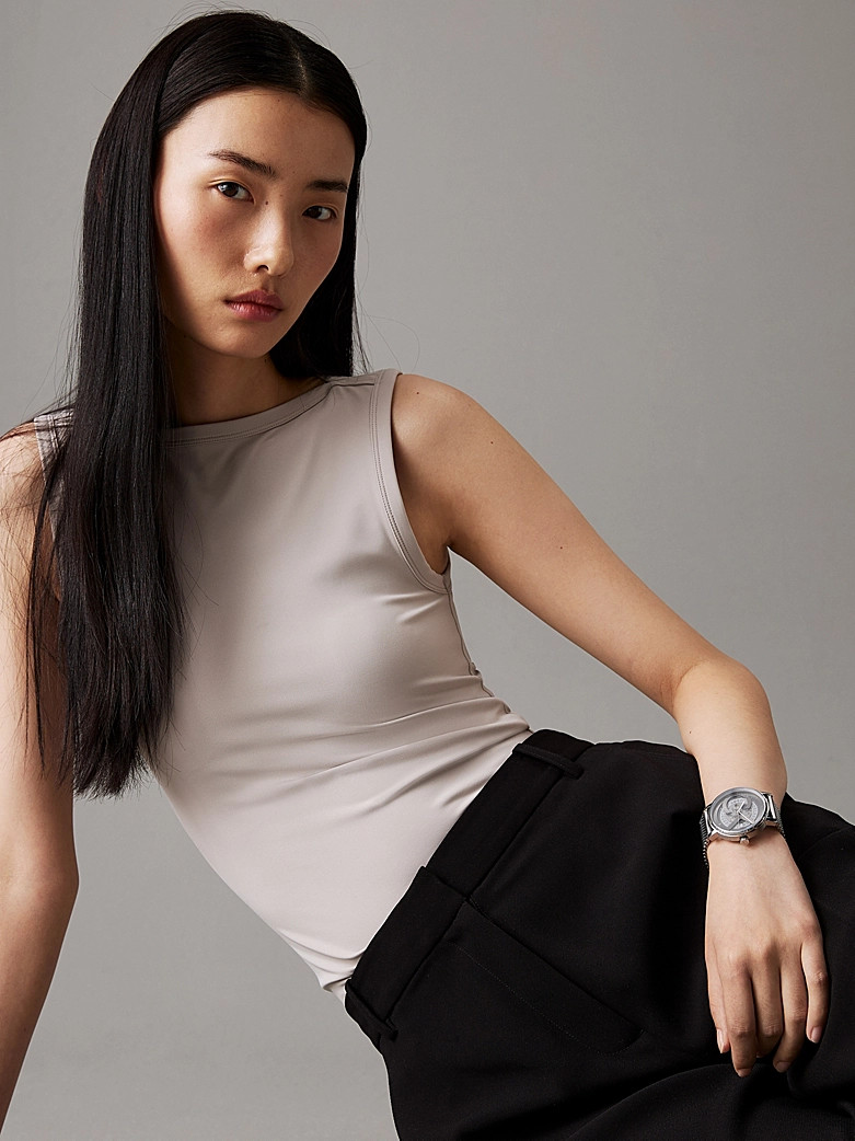 Movement-driven. This automatic watch features a beautiful exhibition case back with an exposed battery-free movement, enhanced by the skeleton dial. Available on a mesh bracelet.