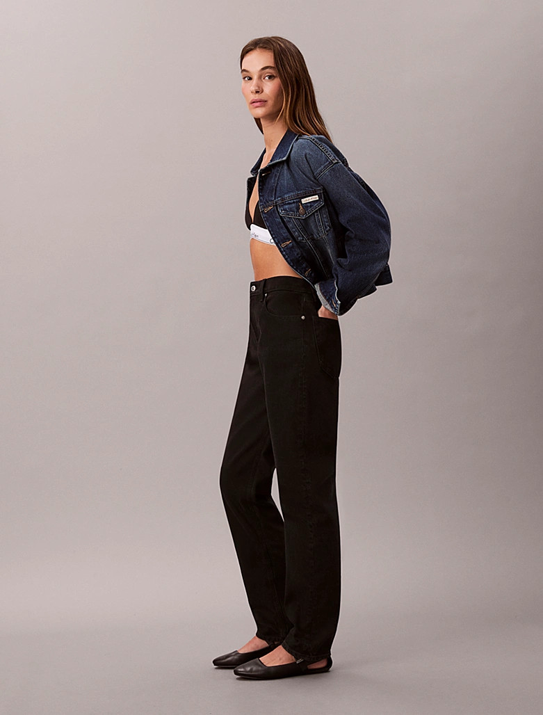 These mom jeans have a relaxed, vintage-inspired silhouette with a high waist, relaxed fit, and tapered legs.