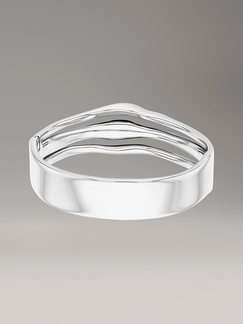 Sculptural, layered form made of polished stainless steel. This bangle features a hinged closure and an engraved Calvin Klein logo.