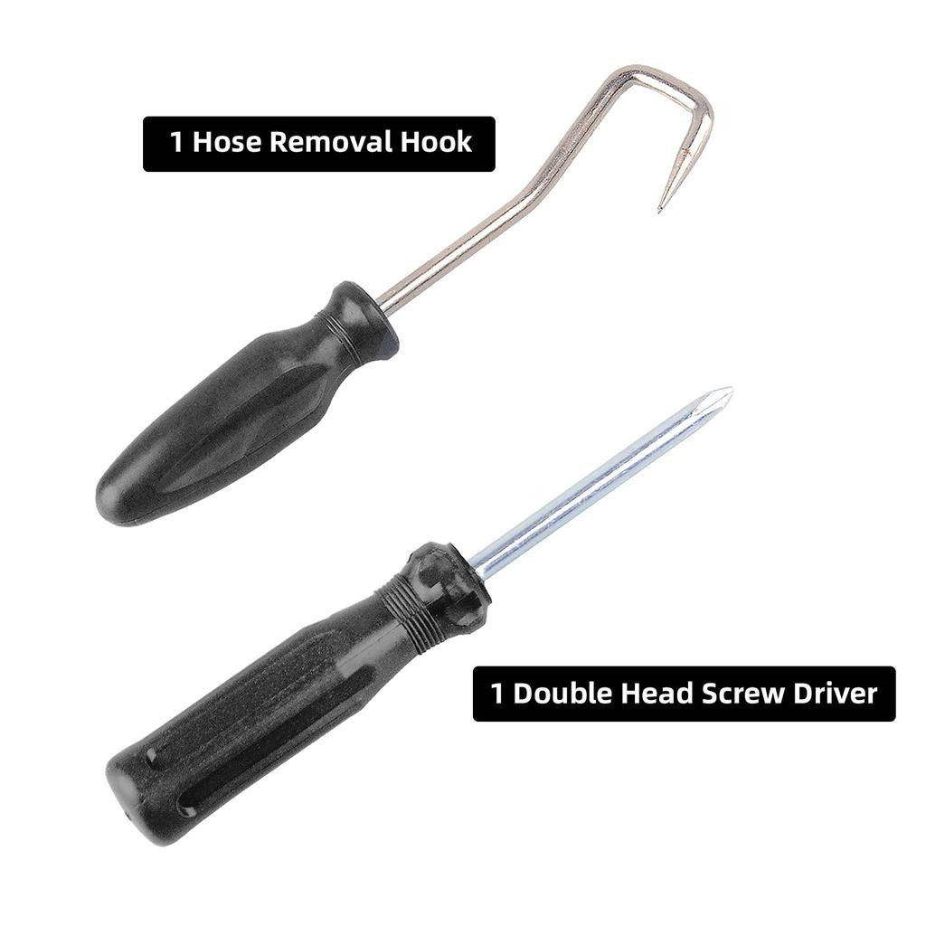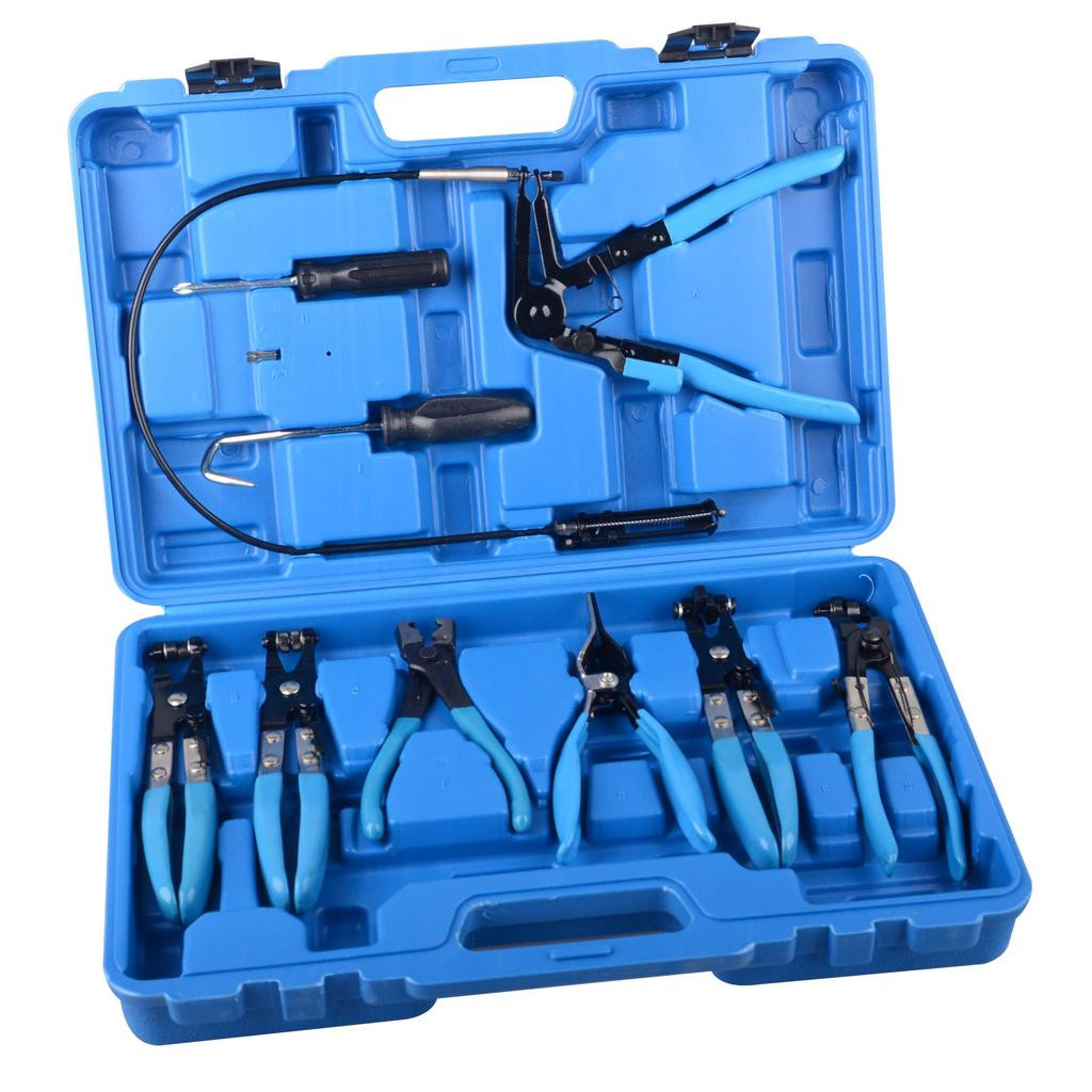 Professional Tools] A special tool set that allows you to easily remove hose clips. This product can be used in car and motorcycle maintenance, etc., to make work easier and faster in places where tools are difficult to use, such as hose bands located in remote areas. [With locking function] It has a locking function and can be easily locked by just squeezing the handle, so you don't have to keep holding it all the time while working, and you won't feel tired even if you work for a long time. [Flexible wire type included] Remote control using a wire allows you to attach and detach the hose clip that cannot fit into narrow spaces or deep places, improving the scope of work and efficiency. [Sturdy Material] Forged from high-hardness carbon steel, it has high hardness, corrosion resistance, and durability. Because the surface is plated, it is water resistant and rust resistant. [High versatility] Equipped with 9 types of hose clamp pliers in one set, it can be used with hose clips of various shapes, eliminating the need to buy tools one by one.