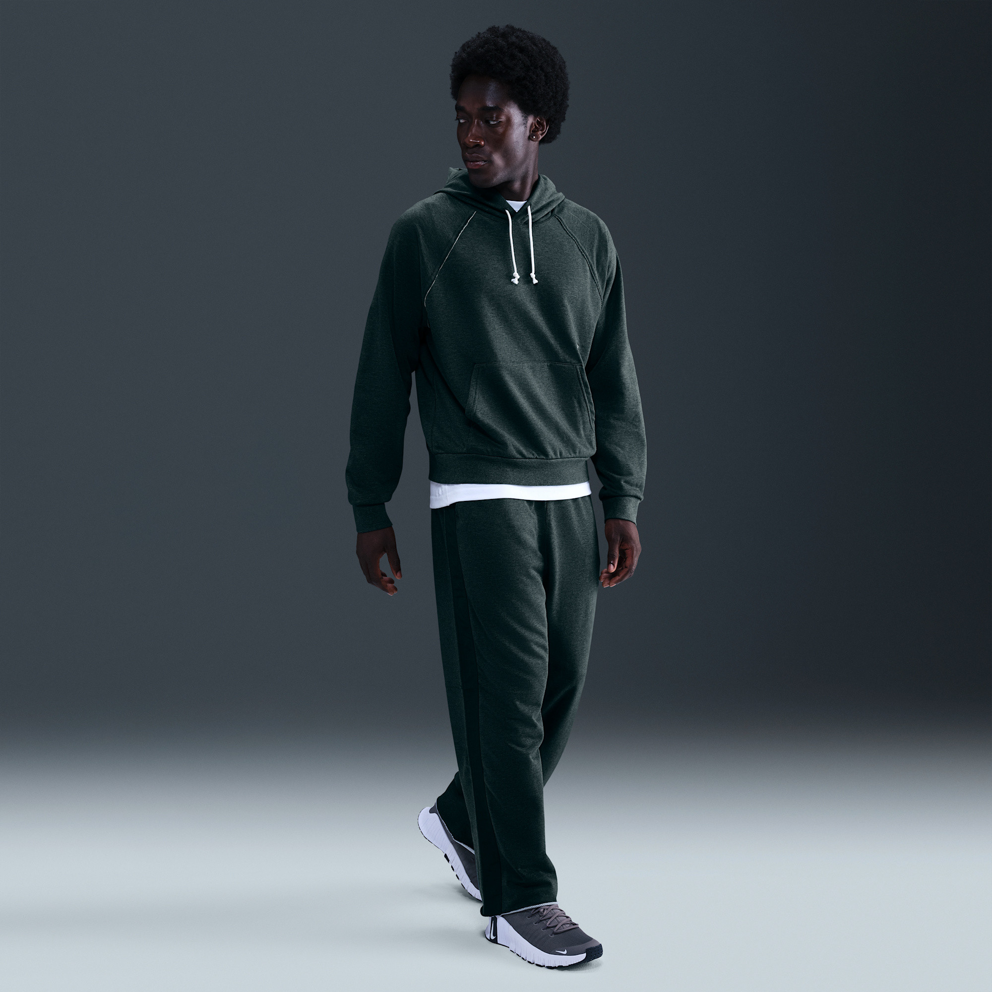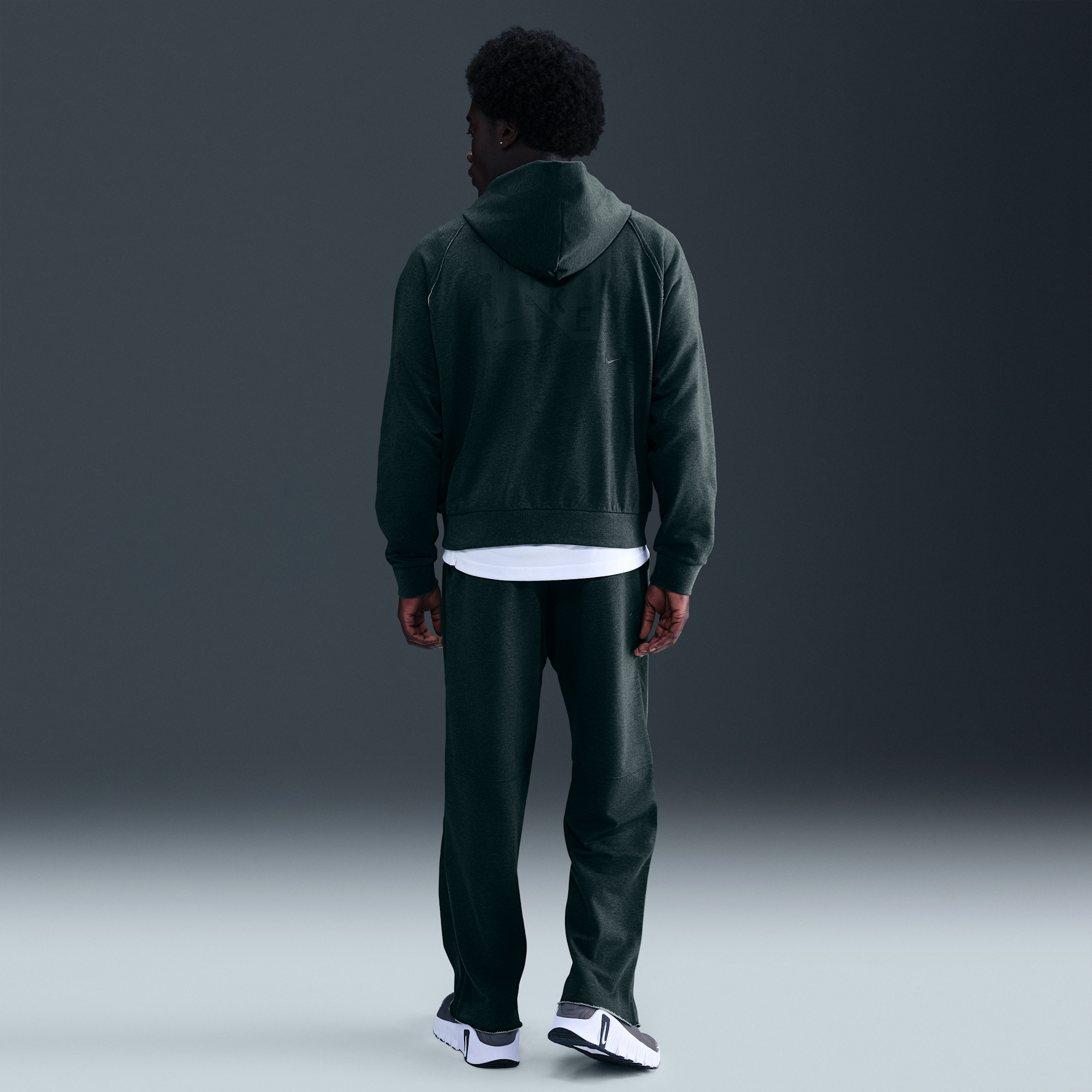 Inspired by retro gym aesthetics, this Pump Covers training hoodie features subtle raw edges and a relaxed fit. The semi-brushed fleece, enhanced with sweat-wicking Dri-FIT technology, ensures modern comfort during your workouts. Stay dry and comfortable while you train.