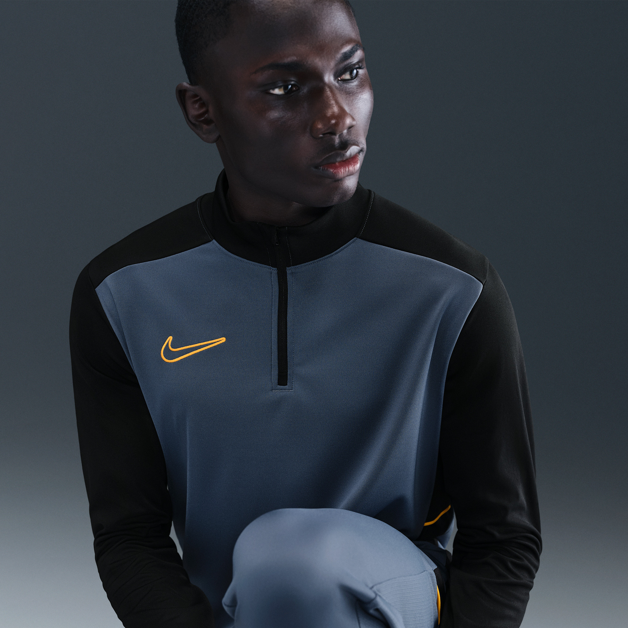 The top features advanced sweat-wicking Dri-FIT technology, effectively drawing moisture away from your skin to keep you dry. Its streamlined, slim fit minimizes bulk, providing a distraction-free experience, while the convenient quarter-zip design offers adjustable ventilation. This combination of features empowers you to elevate your intensity and speed in every drill and training match, supporting peak performance without compromise.