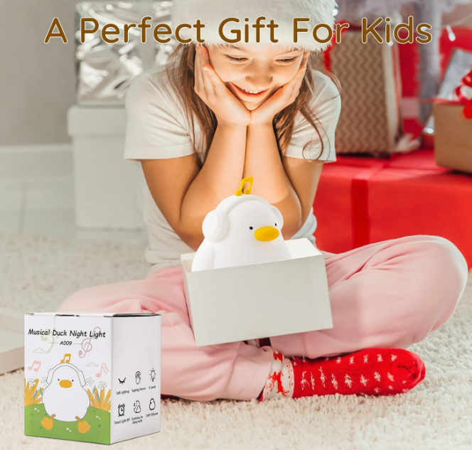 DESIGN FEATURES: Adorable duck-shaped night light with headphones design, made from soft silicone material for a gentle, soothing glow