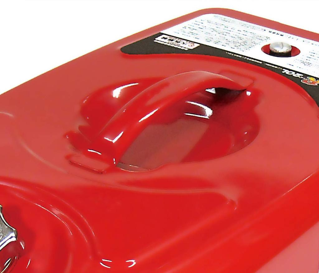 Capacity: 5l Fire service law compliant product khk/un Material: Galvanized steel plate Steel plate thickness: 0.8mm Body size: W244xH114xD408mm Weight: 1.6kg Accessories: Refueling nozzle (with storage bag), contents display sticker