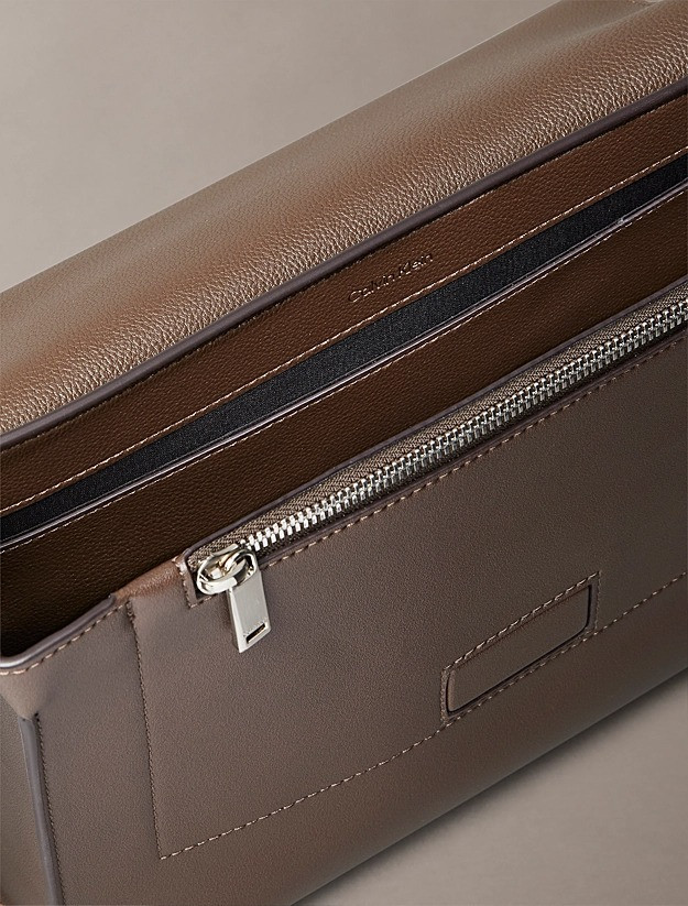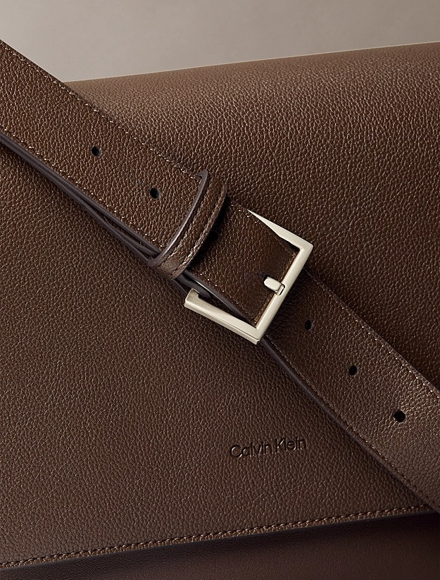 This Calvin Klein men’s shoulder bag is crafted from micro-grain faux leather, offering a sleek and refined look. Features an adjustable 70 cm shoulder strap, magnetic flap closure, and an interior zip pocket. Dimensions: height 20.5 cm, length 27 cm, width 8 cm. The flap is embossed with a mini Calvin Klein logo.