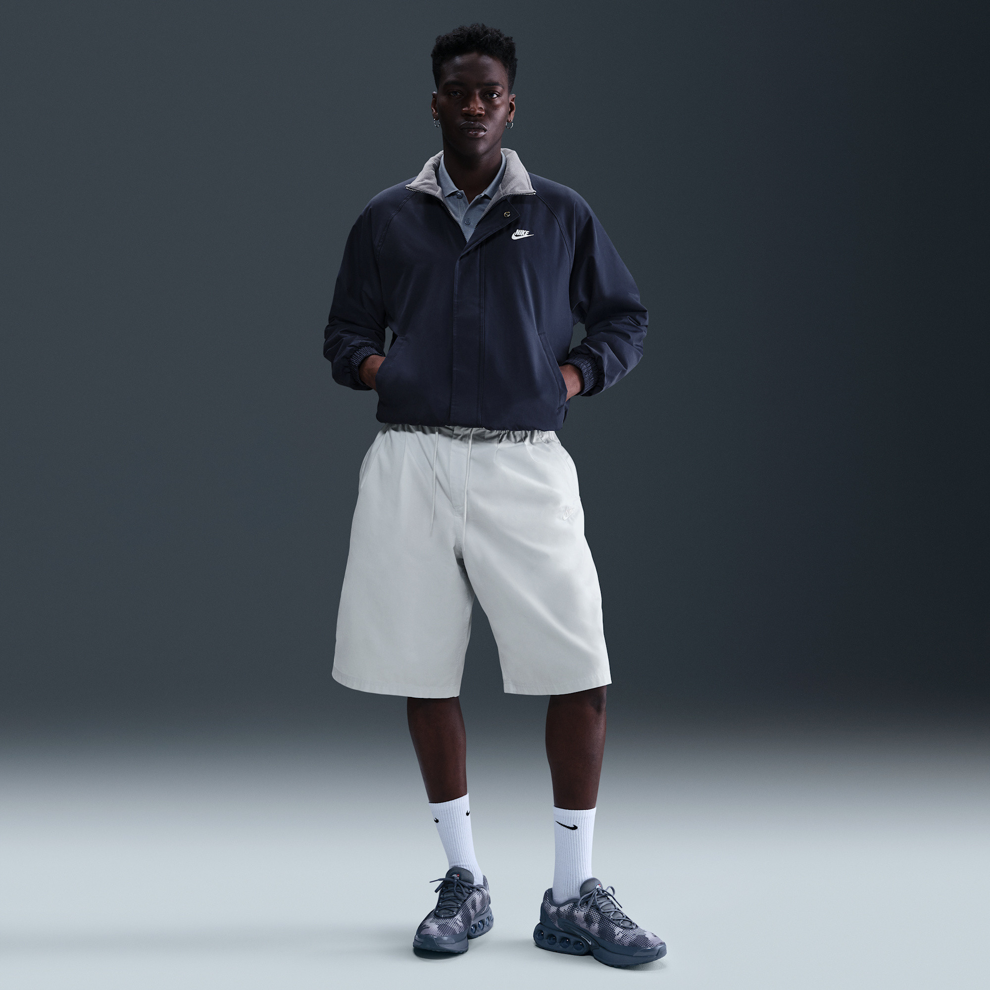 This generously cut, zip-up jacket features a clean, understated design. It offers a relaxed fit, making it an ideal layering piece over other garments. Crafted from smooth, woven material on the exterior, it provides exceptional casual comfort.