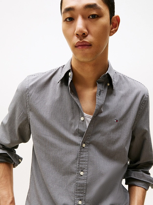 Product Description: This Tommy Hilfiger Regular Fit shirt is crafted from pure cotton poplin with micro Vichy checks. Thanks to TH Flex 4-way stretch technology, it provides ultimate comfort throughout the day. It features a button-down collar, rounded button cuffs, and is finished with the signature Tommy Hilfiger flag embroidery on the chest.