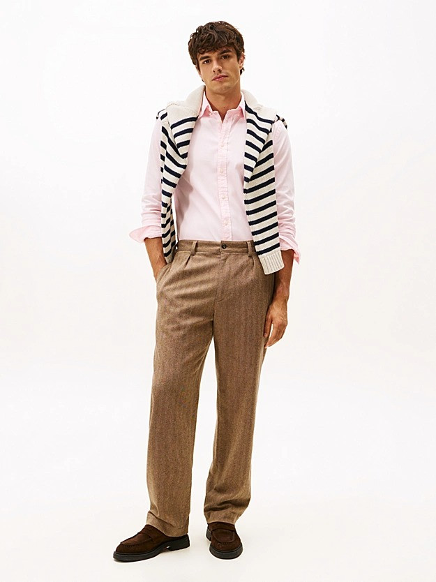 Product Description: This Slim Fit Tommy Hilfiger shirt is made from yarn-dyed cotton dobby fabric with added stretch, giving your look subtle texture and all-day comfort. It features a button-down collar, rounded button cuffs, and is finished with the signature Tommy Hilfiger flag embroidery on the chest.