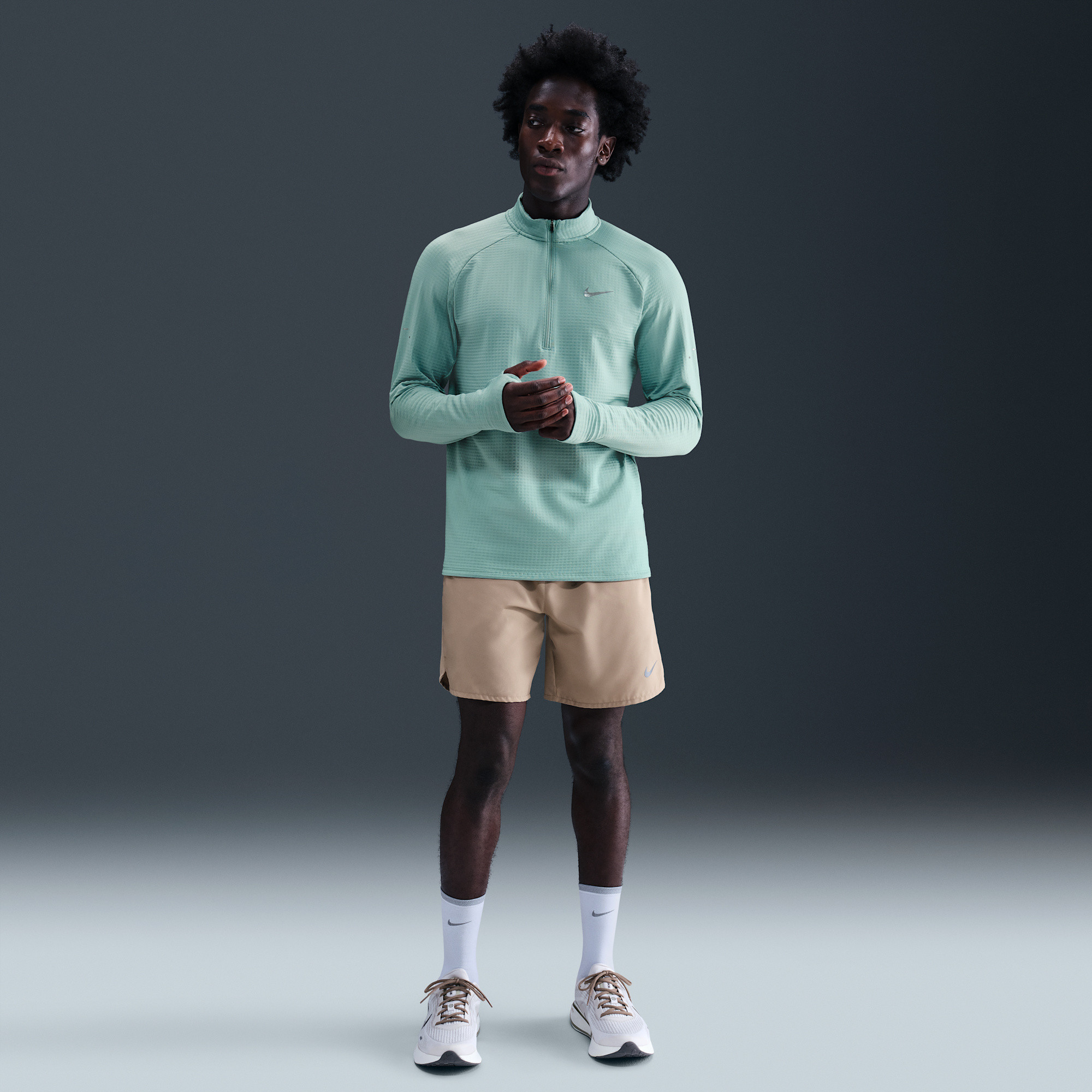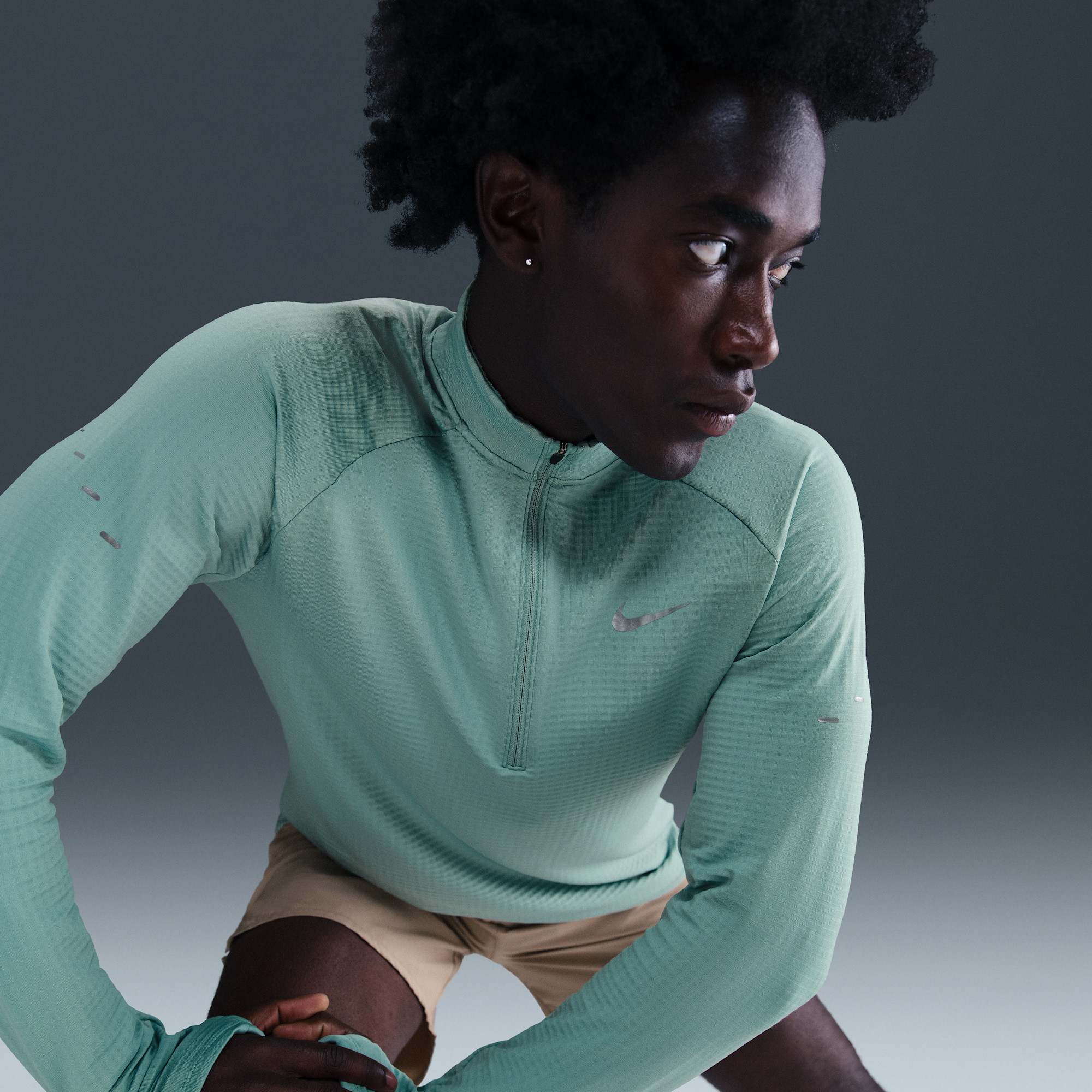 Conquer the elements with this winter-ready running top, engineered to keep you comfortable and focused in challenging weather. Featuring advanced Therma-FIT technology, it provides exceptional warmth and regulates your body temperature, ensuring you stay cozy during your cold-weather runs. The durable, water-repellent coating sheds light rain and moisture, allowing you to push through without distraction. Designed for optimal performance, its raglan sleeves minimize chafing and irritation, offering a smooth, unrestricted range of motion. The interior boasts a unique waffle-knit texture, delivering a remarkably soft feel against your skin while maintaining a lightweight profile. This half-zip design allows for adjustable ventilation, making it a versatile layer for any winter workout.