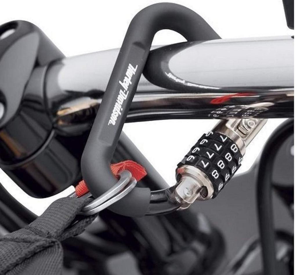 Universal helmet lock carabiner style Quantity: 1 Fit size: up to 1.5"/38mm No key required thanks to 4-digit PIN code setting