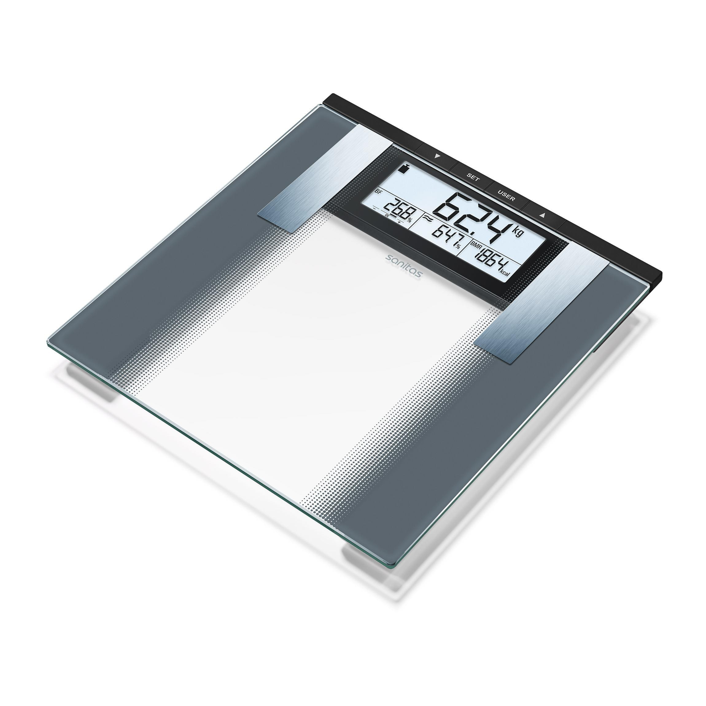 Measures weight, BMI, body fat, body water, bone, and muscle percentage