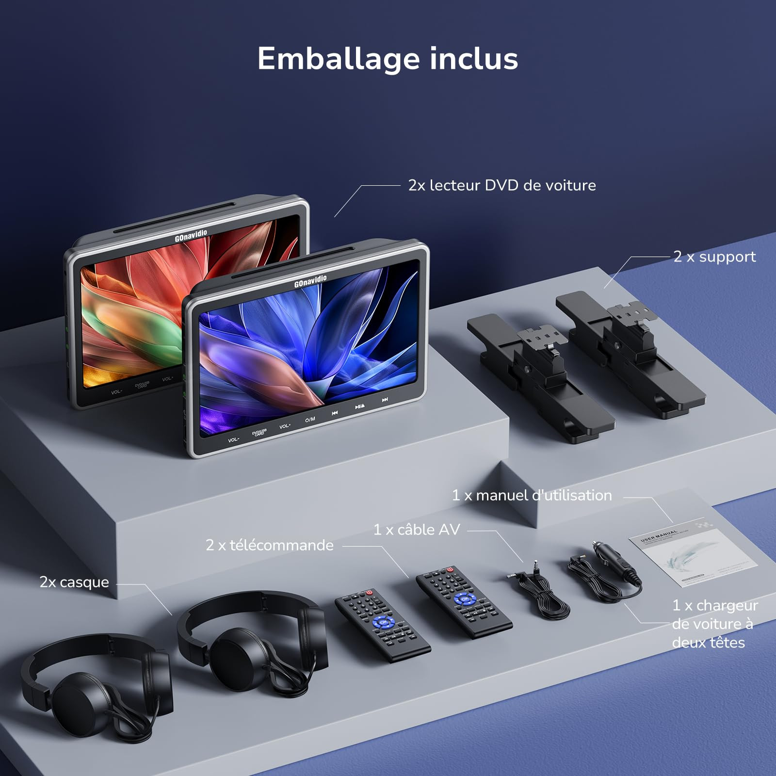 [HDMI Input/Synchronization of 2 Devices] Compatible with HDMI-IN, you can enjoy high-quality video and audio by connecting HDMI-compatible devices such as smartphones, Switch, and computers, and use it for various purposes such as watching YouTube videos. You can play the same video at the same time by connecting two DVD players with the AV cable (included), and you can also watch different videos separately. [Slot-in type/Headphones] Slot-in type, DVD is automatically sucked in and taken out easily. Comes with two wired headphones, stable sound output, good sound quality, protects children's hearing, and does not interfere with the driver's seat. [Region Free Resume CPRM] You can watch not only Japanese DVDs but also foreign DVDs with region free DVDs. Even if you turn off the resume function while watching a DVD, you can continue watching it from where you left off. It is possible to play DVDs (CPRM) that record terrestrial digital broadcasts. [Built-in speakers, USB/SD, easy to install] Built-in dual speakers, high quality speakers. A variety of formats can be played with USB/SD cards, and supports up to 128GB (FAT32 format). The mounting placket is adjustable, so you can fix it at an angle that is easy to view, so you can enjoy it in the best position without getting tired even on long trips. Cigarette adapter included: 2 DC terminals with 1 cable, can power 2 monitors at the same time, no need for a cigarette socket distributor, very convenient. [High Quality] Compatible with 12V vehicles only. Returns or refunds are accepted for one month without any reason. If you have any defects or questions about the product, please feel free to contact our store. We will respond as soon as we receive your contact. [Specifications] Screen size: 10.1 inch Resolution: 1024 * 600 CD/DVD format: CD, CD±R, CD±RW, KodakCD, SVCD, VCD, DVD, DVD±R, DVD±RW, DVD-5, DVD-9 Built-in speaker USB & SD: Supports up to 128GB Supports FAT32 format MPG, VOB, FLV, AV, DAT, DIVX, MPEG (up to 720*576 resolution) Video format: MPEG-1V, MPEG-2V, Sorenson H263, XVID, DX50, DIVX Audio format: MP2, AC3, MP3, PCM, 161 Please note: Does not support formats MP4, MOV, MKV, WMV, ASF, MPEG - Operating voltage: DC 9-14.4V [Package] 2 * 10.1 inch DVD player 1 * Cigarette lighter cable 1 * AV cable 1 * Japanese manual 2 * Remote control 2 * Wired headset 2 * Mounting bracket