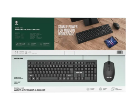 The Green Lion GKM-100 Wired Keyboard and Mouse combine art with durable building quality, further offering stable performances in daily use. The keyboard is fabricated from first-class ABS material, offering excellent durability; its keystroke service life is as long as 8 million presses. Therefore, it's a good choice for work and games. A high resolution of 1000 dpi promises a precise tracking effect. And the 1.5-meter wire length is flexible for all different settings. It has a non-slip base and is stable during aggressive typing or gaming sessions. This combo works with a wide range of devices, offering seamless functionality with minimal hassle when setting up. The construction is resistant to regular wear and tear, making it very durable and promising consistent performance. From the office to your homes, the Green Lion GKM-100 will provide just that perfect blend of style, comfort, and performance for ease and efficiency to raise your computing experience.