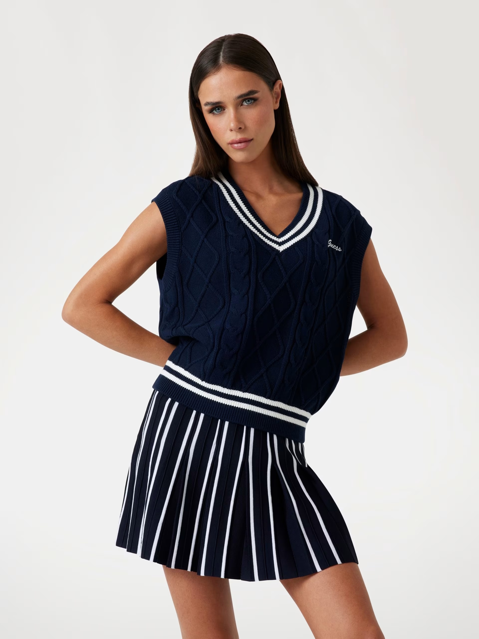 The model dressing in Blue and Light Brown and White colours is 174cm tall