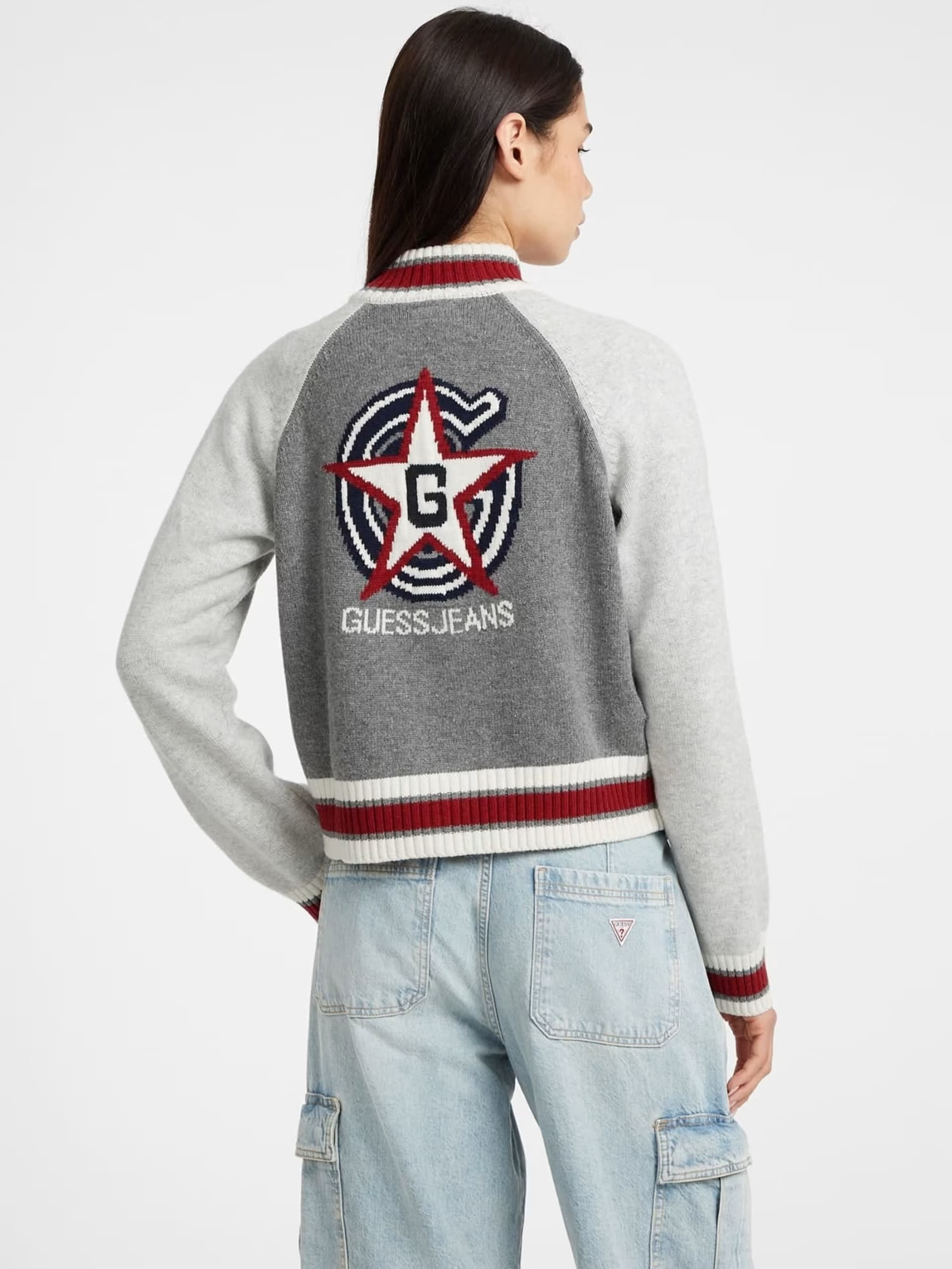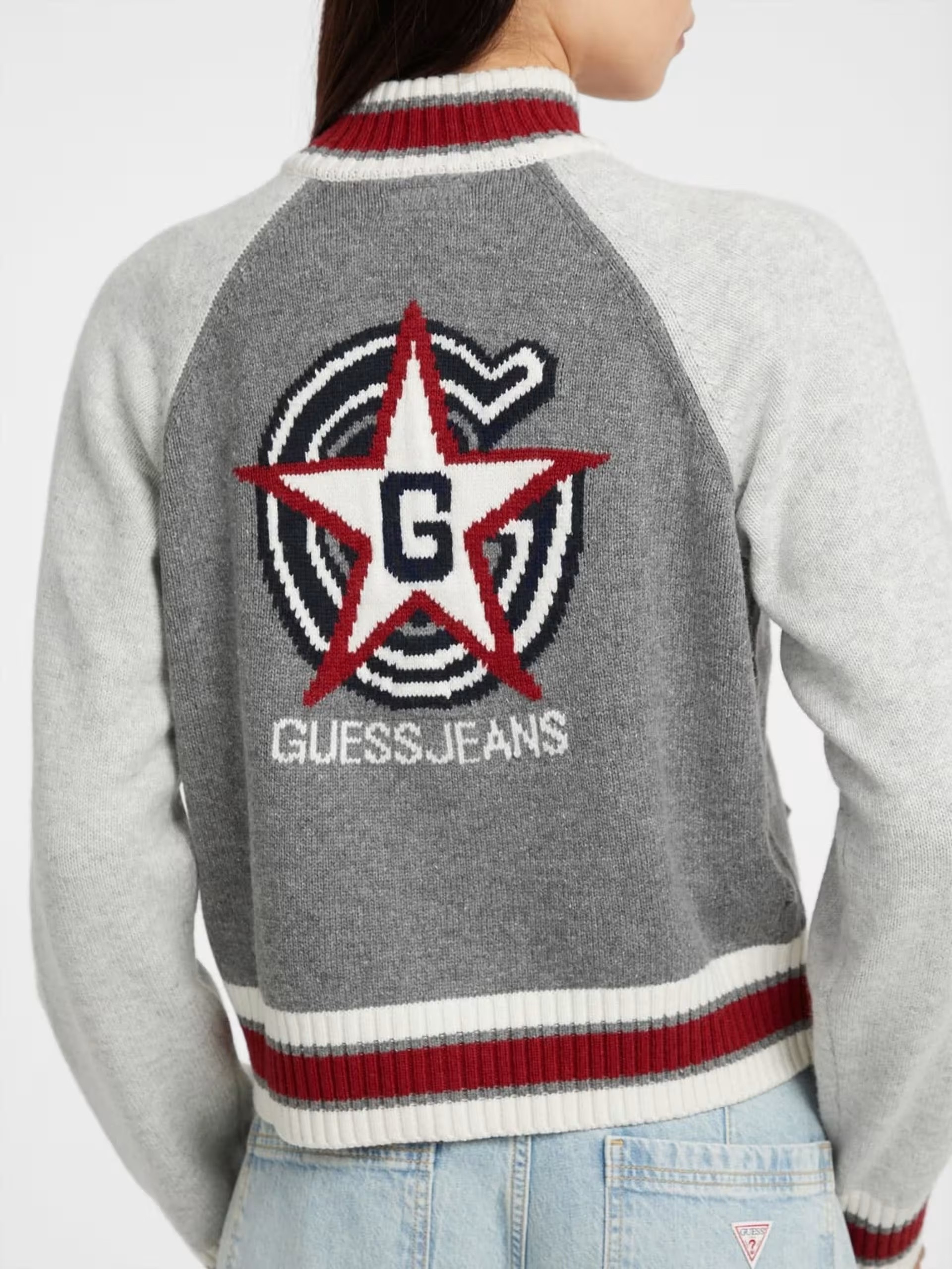 Retro flair meets modern ease. Full-zip sweater with a high neck, blending color blocks for a stylish edge. Contains organic cotton fibers