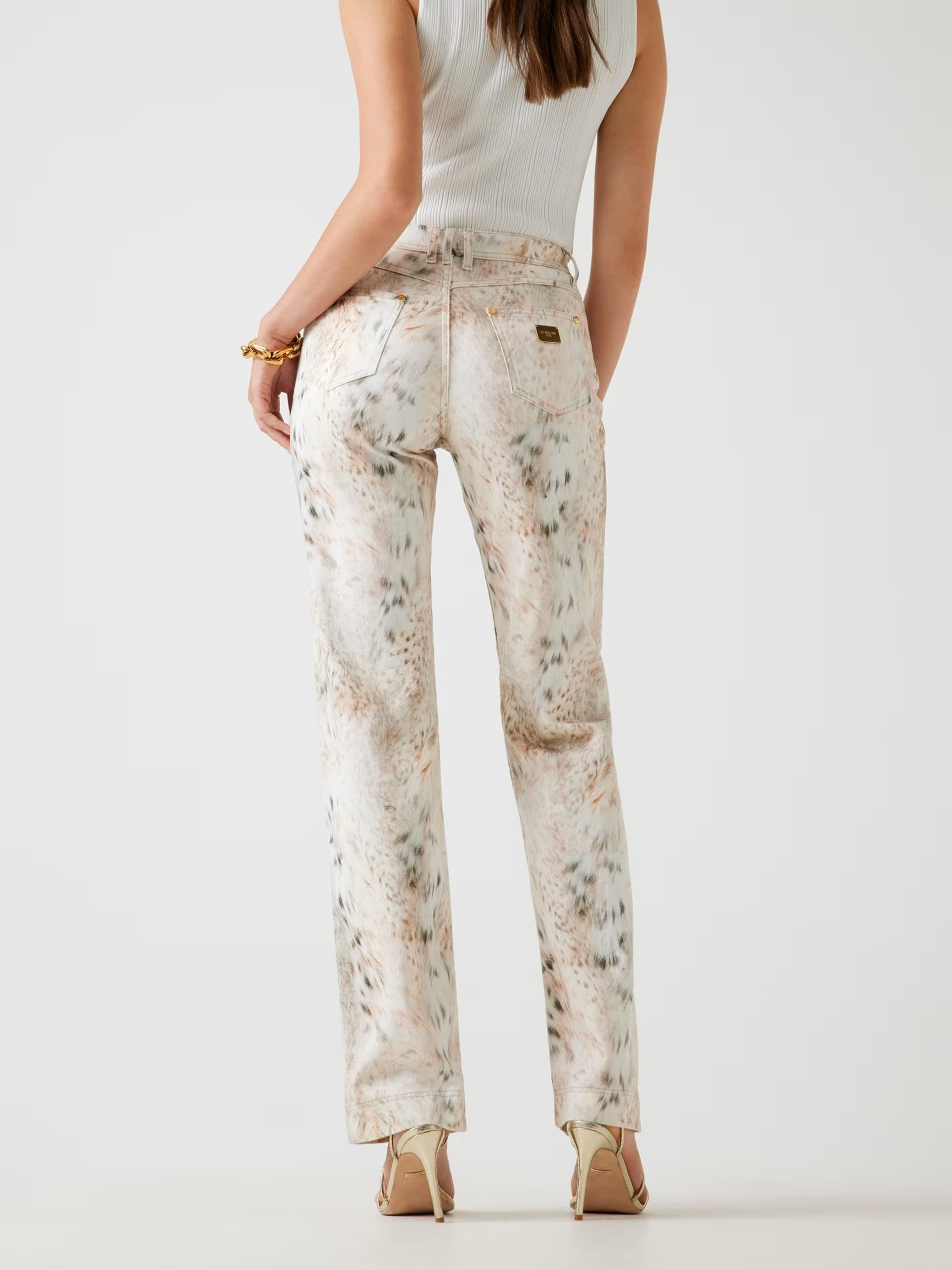 Own your elegance with these regular-fit jeans, perfect for a day-to-night look. Crafted from organic cotton twill, they offer a classic mid-rise waist and straight-leg silhouette. Revel in the animal print for a daring style that embraces sustainability at every step.