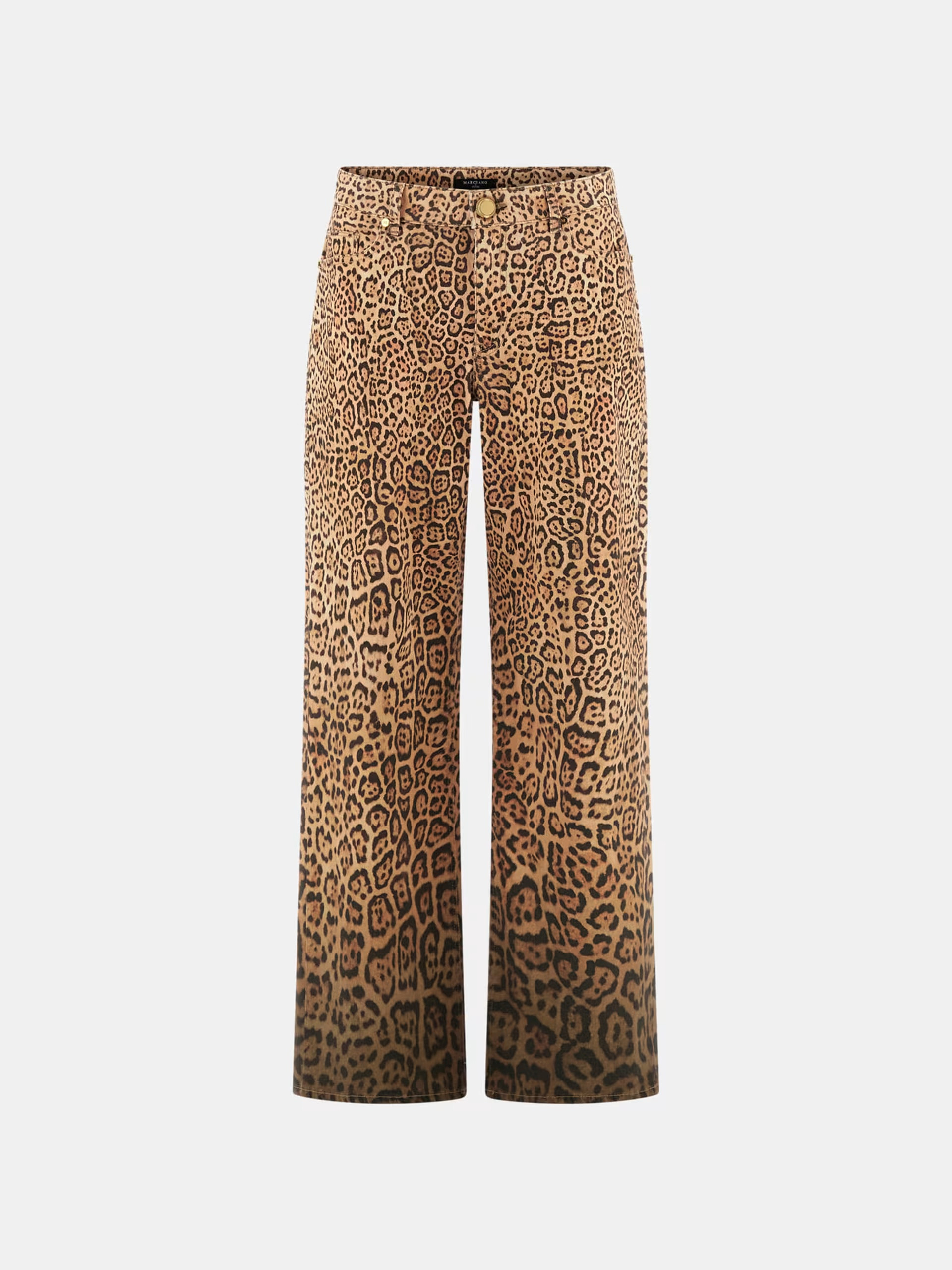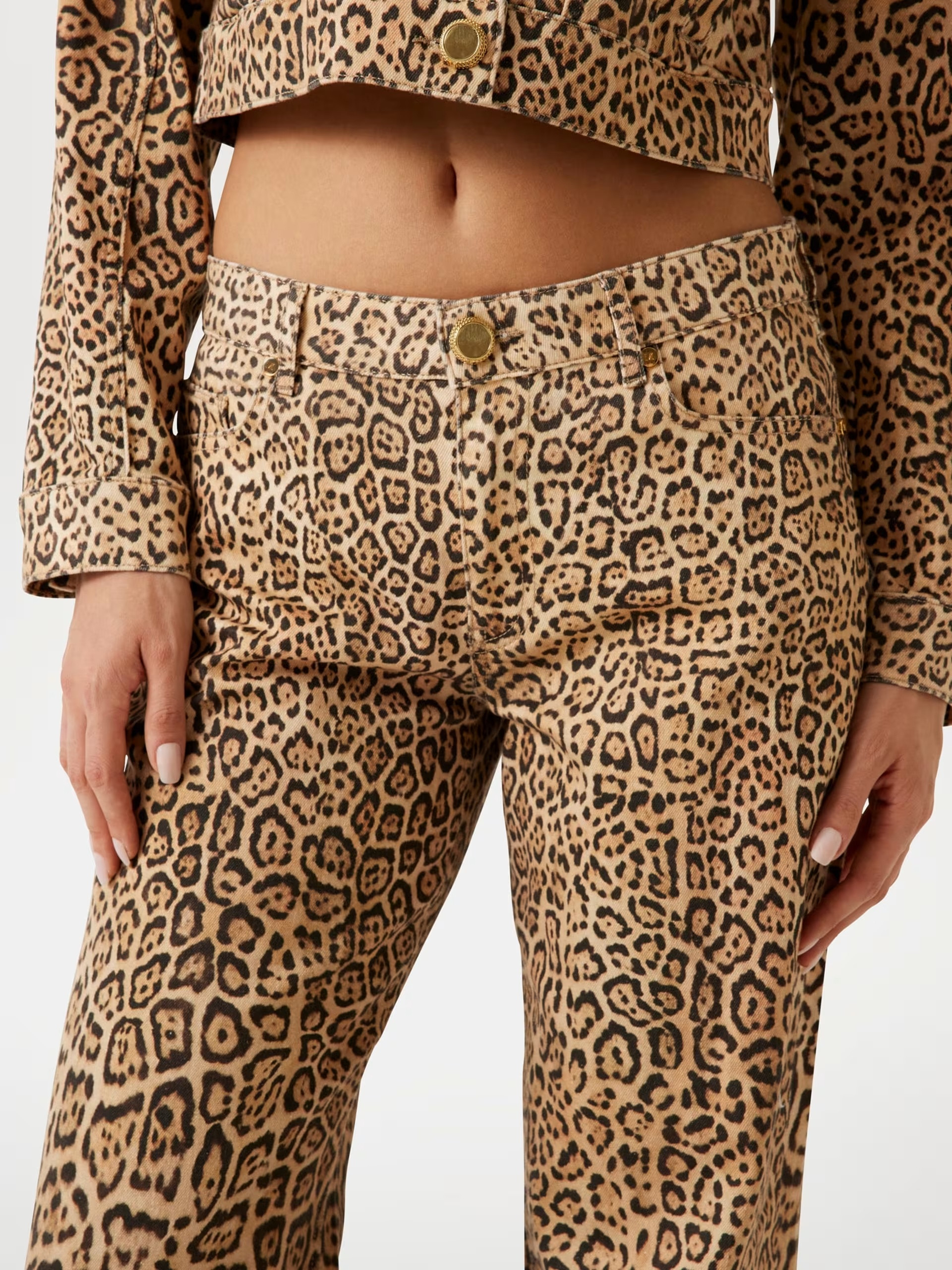 Step into sophistication with these leopard print jeans. The classic mid-rise waist and regular fit offer timeless comfort, while the sleek five-pocket design adds functionality. Crafted from organic cotton twill, ideal for chic city strolls or stylish dinner dates.