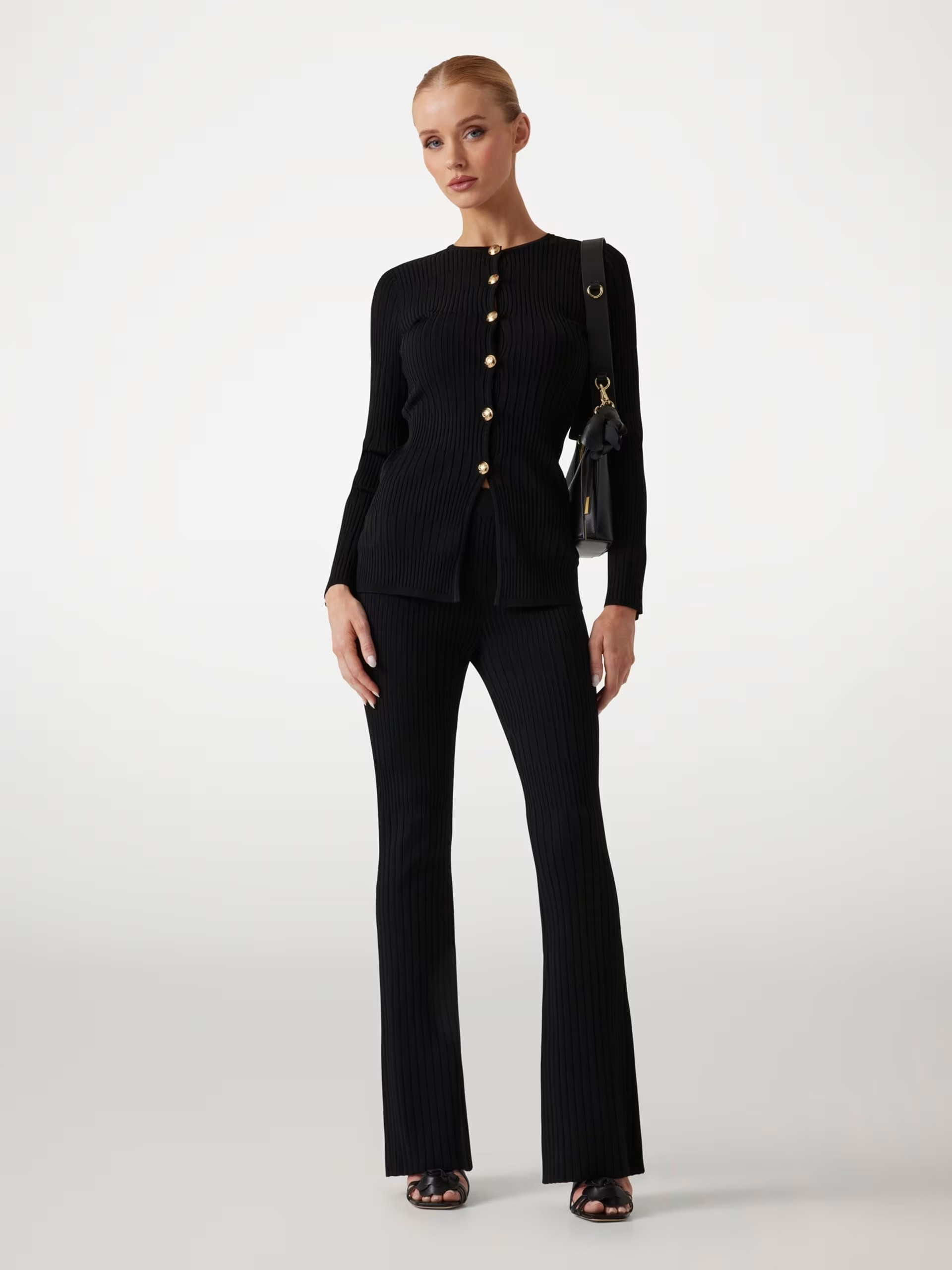 Step into sophistication with this stretch viscose-blend cardigan. The elegant vertical ribbing and polished buttons add a touch of grandeur. Ideal for office days or evening gatherings. Soft, clinging fabric elevates your attire, making it perfect for a formal occasion or a stylish affair.