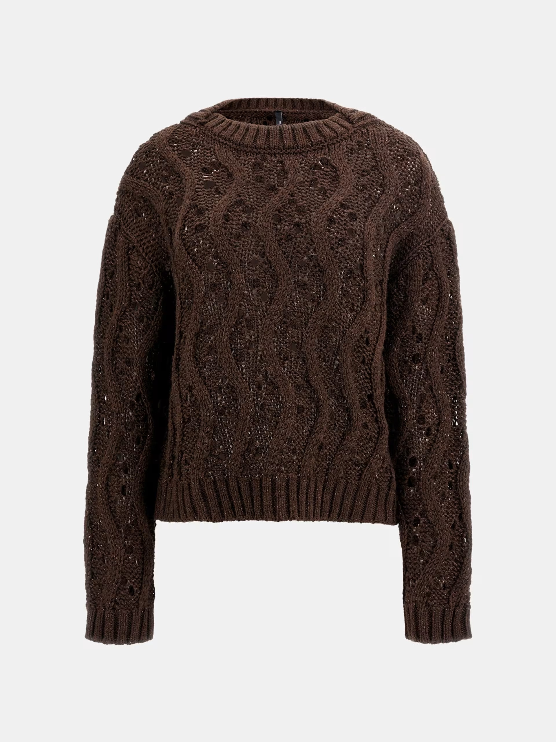 • Wool-blend open-cable-knit sweater.