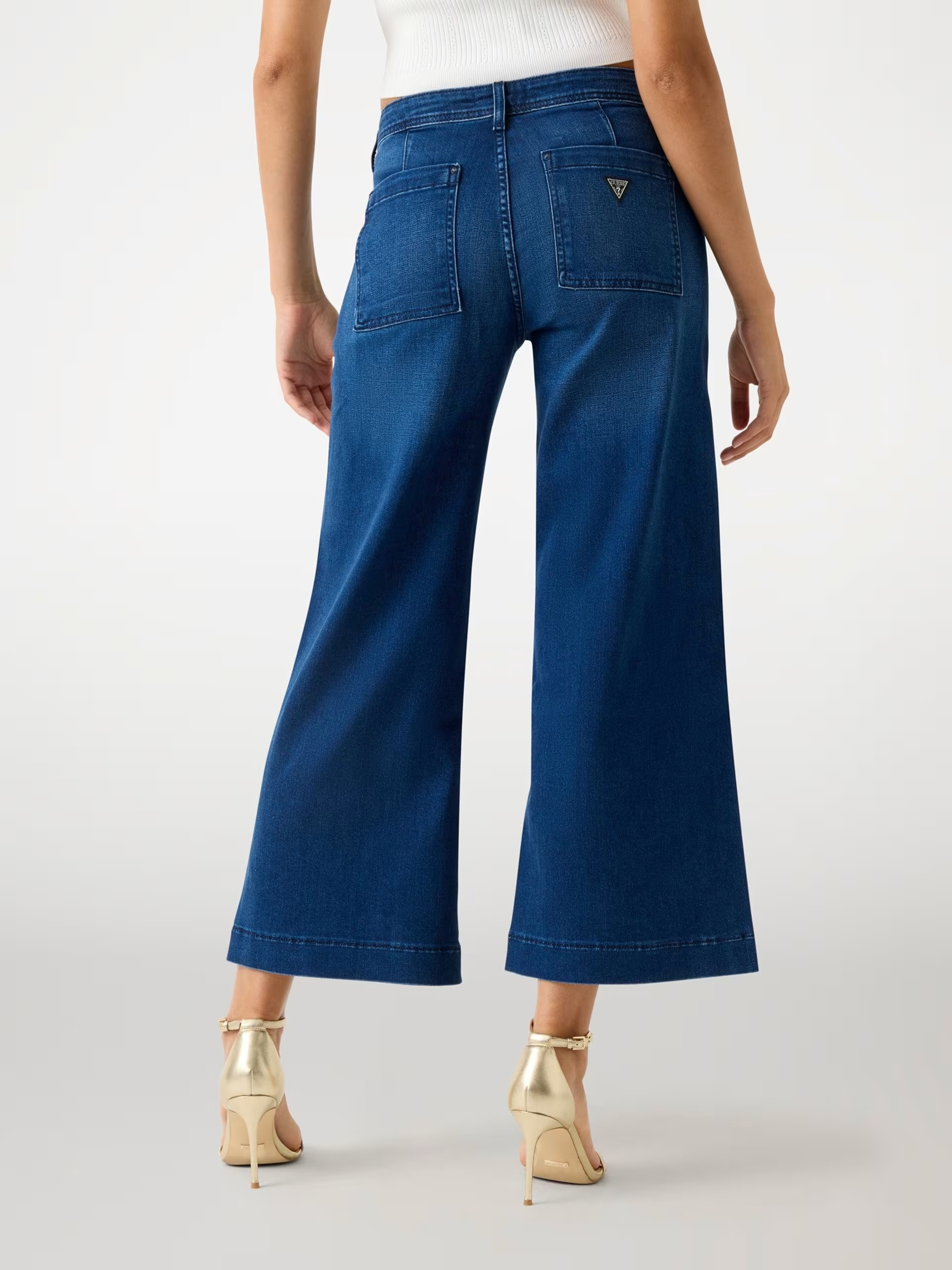 Step into effortless style with our wide-leg stretch jeans, perfect for your daily wear. The five-pocket layout combines utility with fashion-forward design. A comfortable mid-rise with loose legs keeps you relaxed all day. Created from breathable cellulose fiber, they promise a silky touch and cooling effect.