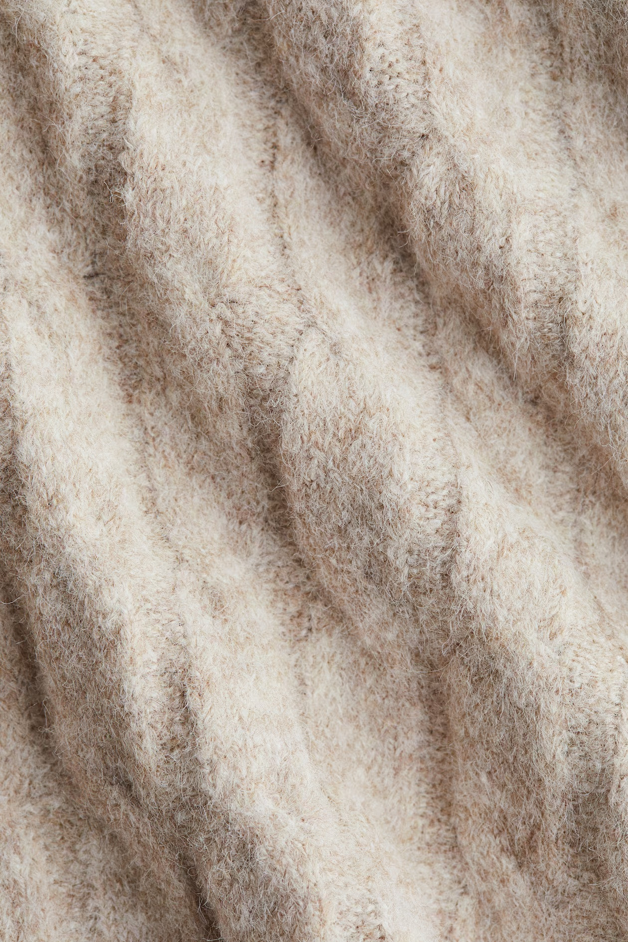 Loose-fitting polo sweater made of soft cable knit with a touch of wool. Featuring a ribbed collar and V-neck at the front, dropped shoulders, and long sleeves with ribbed cuffs. Ribbed hem with side slits.