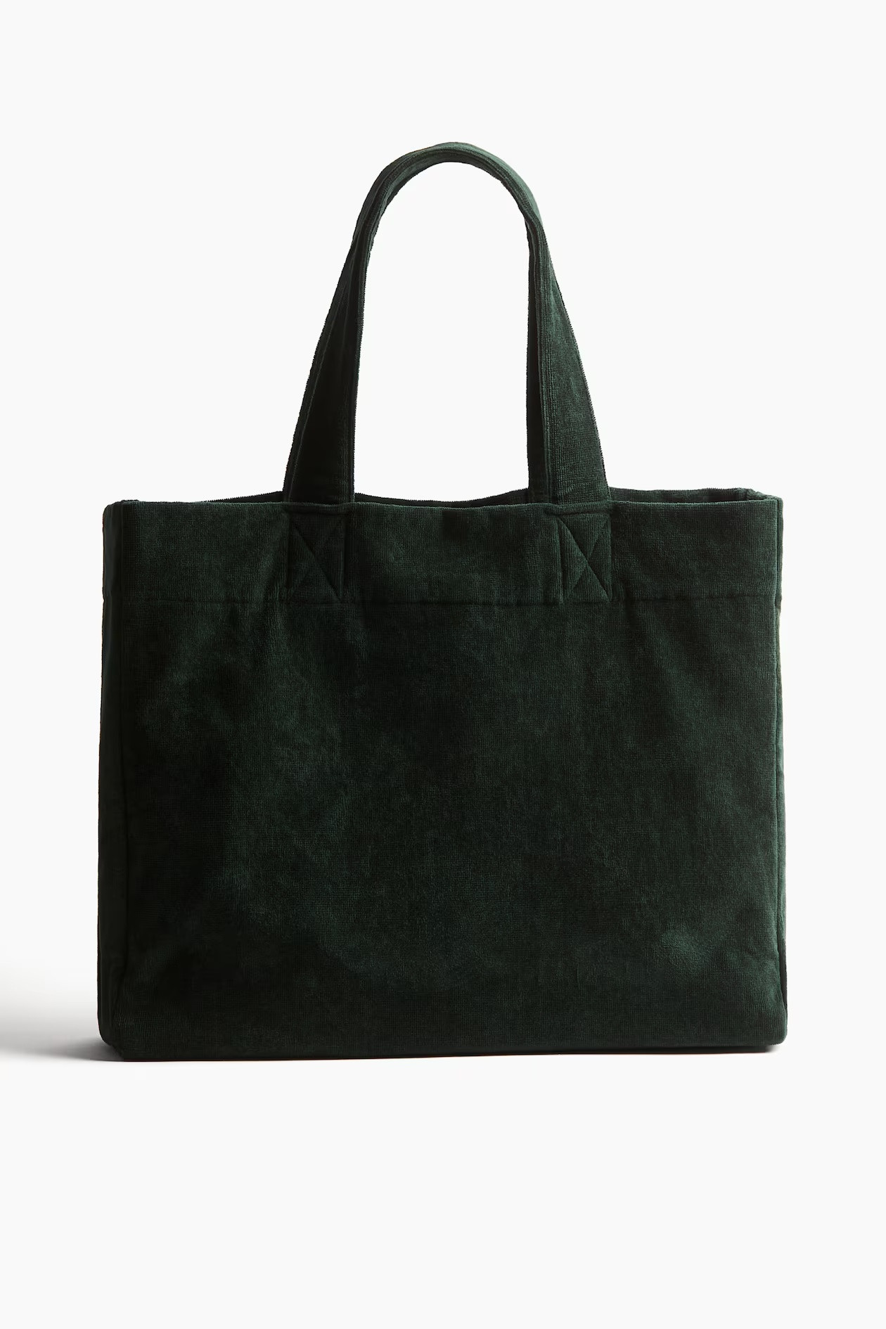 From sandy shores to sun-soaked adventures, carry your essentials effortlessly in this spacious beach bag crafted from soft, absorbent cotton terry. Lined. Depth 12 cm. Height 40 cm. Width 50 cm.