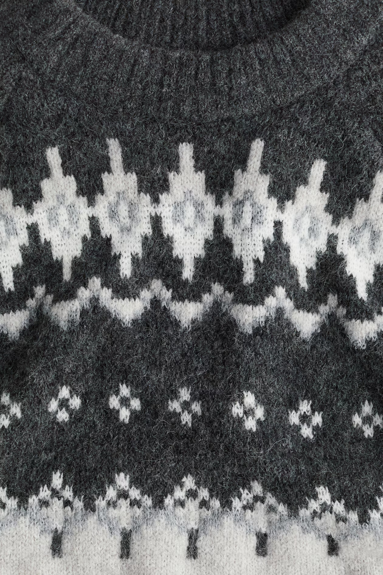 Oversized sweater made of soft jacquard knit with wool. Featuring a ribbed round neck, long raglan sleeves, and ribbed cuffs and hem.